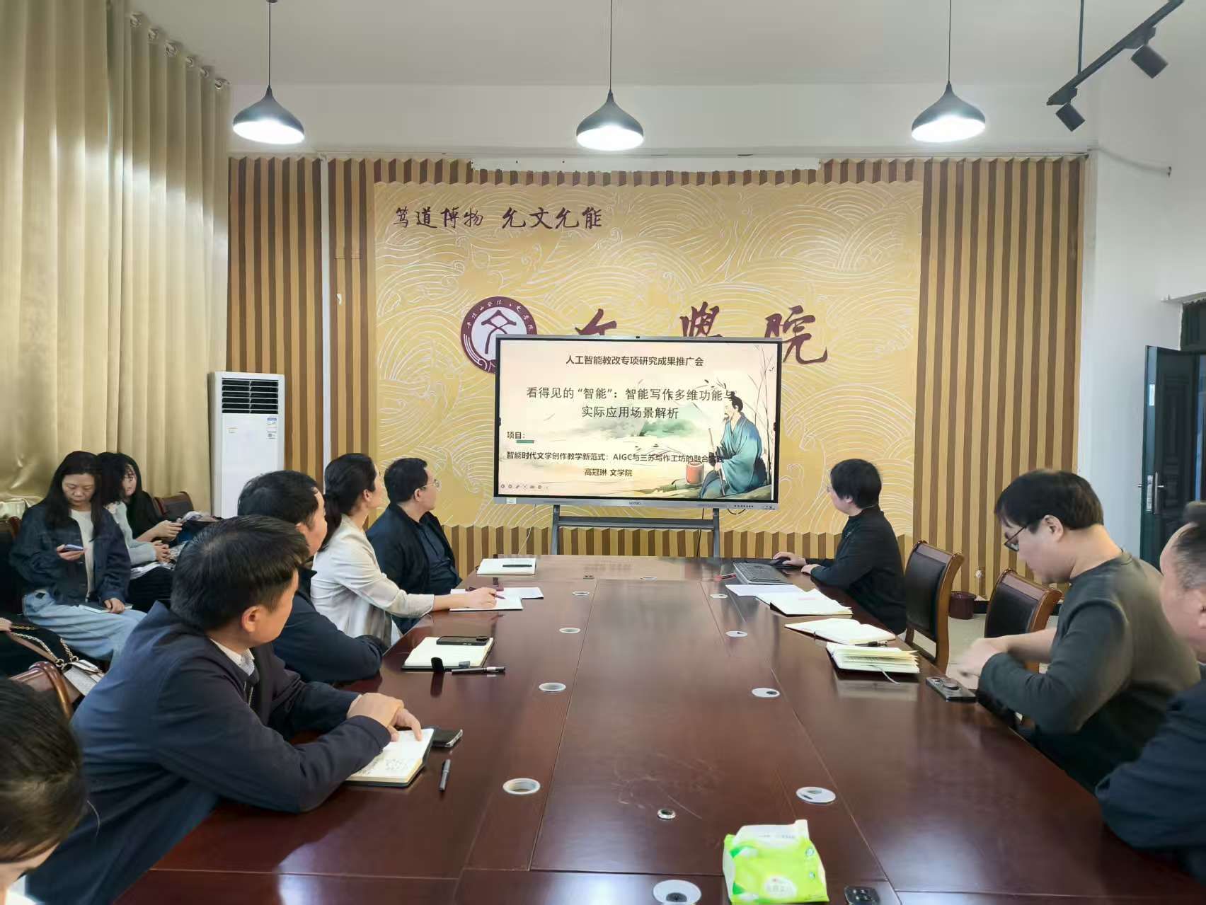为提升全体教师数字素养与智能技术应用能力,根据学校安排,9月18日下午,文学院教师发展中心在1301会议室举办2025年第一场校级人工智能教改专项研究成果推广会。“智能时代文学创作教学新范式:AIGC与三苏写作工坊的融合实践”校级教改项目负责人、文学院教师高冠琳,“人工智能赋能书法通识教育课程创新建设研究”校级教改项目负责人、艺术设计学院院长刘斐分别作了发言。推广会由文学院副院长王惠主持。