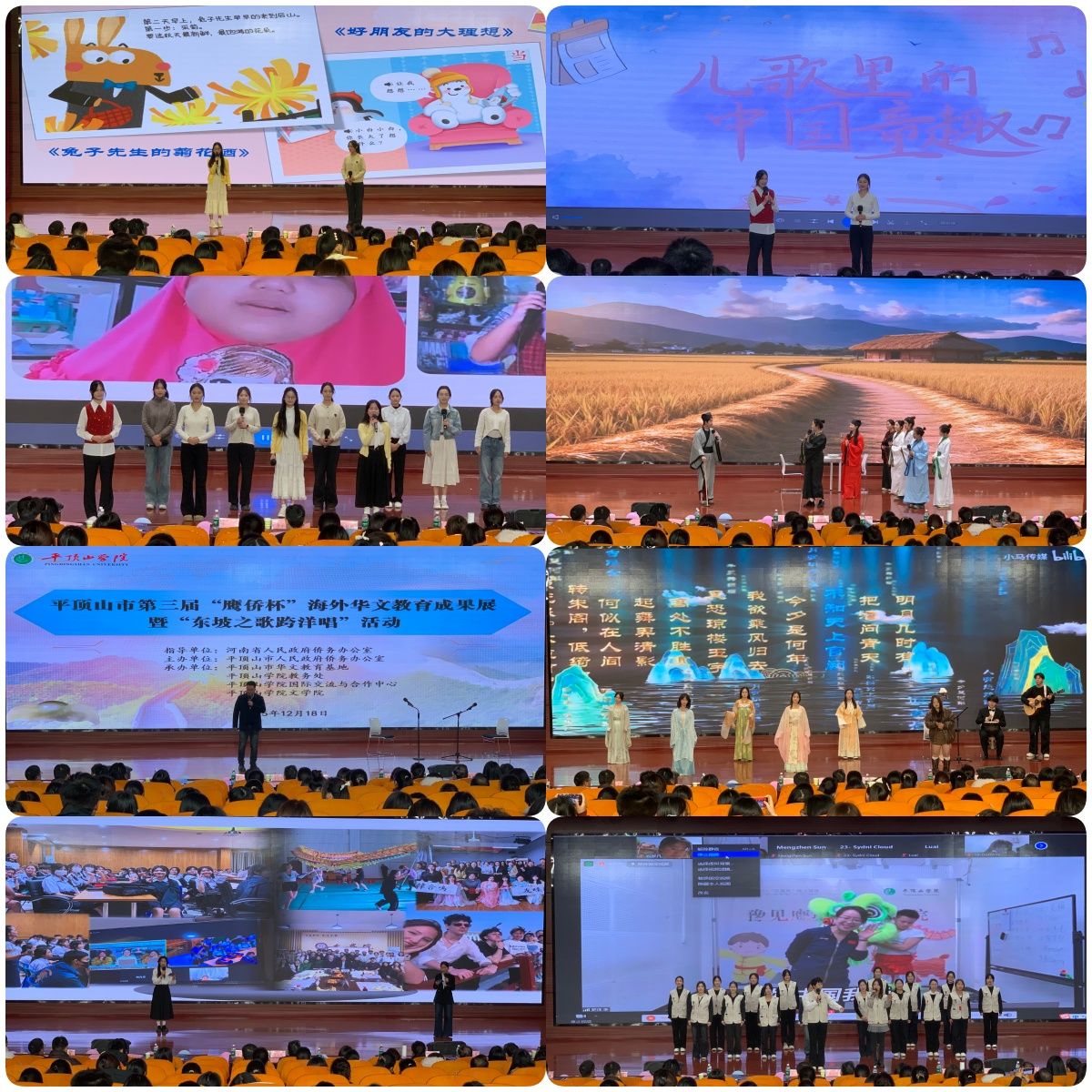 12月18日下午,平顶山市第三届“鹰侨杯”海外华文教育成果展示暨“东坡之歌跨洋唱”活动在我校湖滨校区中心会议室举行。平顶山市侨办主要负责同志,省侨办相关负责同志,华人头条河南频道总编杨泽涛、华人头条河南频道外联部负责人王刘瑜,我校副校长李波、外事部门负责人、文学院负责人出席,文学院青鸢国际中文教育团队全体成员与学生代表参加活动。活动由我校国际交流与合作中心主任王雁冰主持。