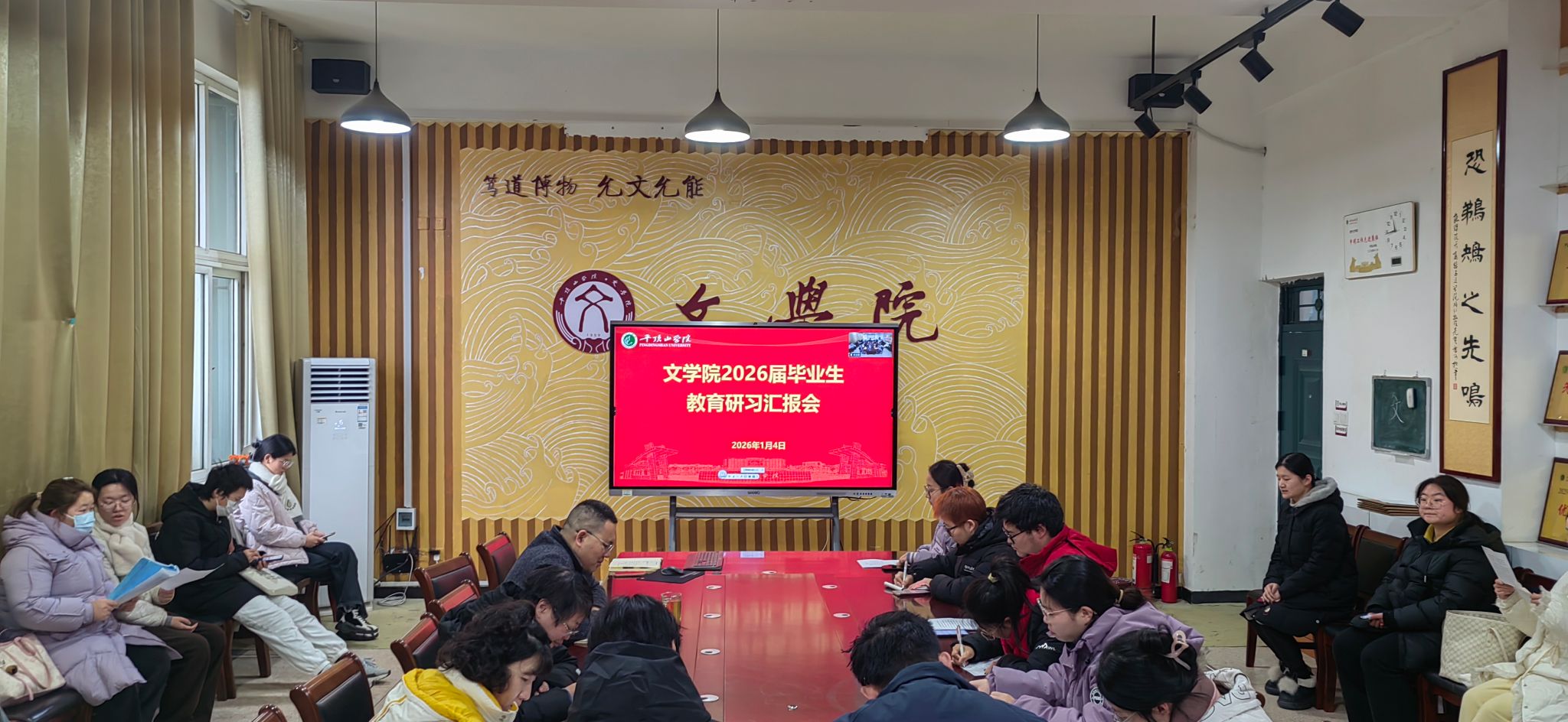 1月4日上午,文学院在1301会议室举办2026届毕业生教育研习汇报会。文学院副院长杜彬彬,专业教师代表赵晓婕、高冠琳、朱玉雯及2026届毕业生代表30余人参加活动。