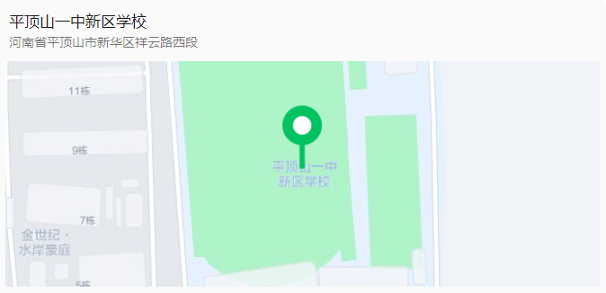 平顶山一中新区高级中学是2015年经平顶山市委市政府和市教体局批准成立的一所全日制寄宿学校,被平顶山市政府纳入平顶山市“十三五”期间十大民生重点工程之一。学校坐落于碧波浩淼的白龟湖畔,北靠龙翔大道,南临祥云路,交通便利。校区占地800余亩,办学规模雄踞全市第一。建校八年来,学校秉承“博采众长、勤勉卓越”的博越理念,以宏大的规模、先进的理念、鲜明的特色、严谨的治学、优异的成绩成为平顶山教育一颗璀璨的明珠。
