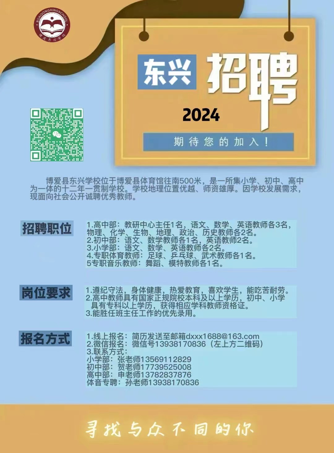 博爱县东兴学校2024年招聘简章