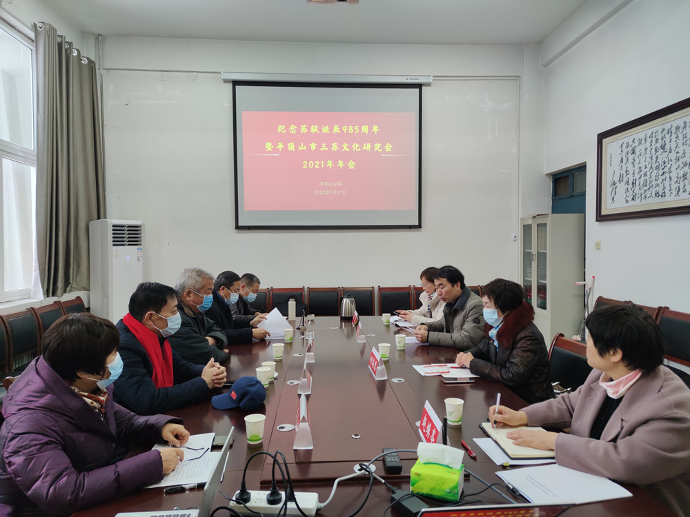 1月21日上午,由平顶山市三苏文化研究会主办,我校文学院、伏牛山文化圈研究中心共同承办的“纪念苏轼诞辰985周年暨平顶山市三苏文化研究会2021年年会”在文学院1322会议室举行。平顶山市政协原副主席潘民中,平顶山学院原党委副书记张清廉,平顶山学院党委副书记袁桂娥、副校长于长立,平顶山市三苏文化研究会会长、平顶山学院图书馆馆长何梅琴,平顶山市三苏文化研究会副会长兼秘书长苏明奇,平顶山学院伏牛山文化圈研究中心主任段纳,平顶山市徐玉诺文化研究会会长、平顶山学院文学院副院长赵焕亭出席会议,来自中华书局、淮南师范学院、平顶山学院、平顶山市图书馆、郏县三苏园景区、三苏纪念馆等国内各地研究三苏文化的专家学者近30人通过腾讯会议形式参加了活动。会议由平顶山市三苏文化研究会副会长、平顶山学院文学院院长孙振杰主持。