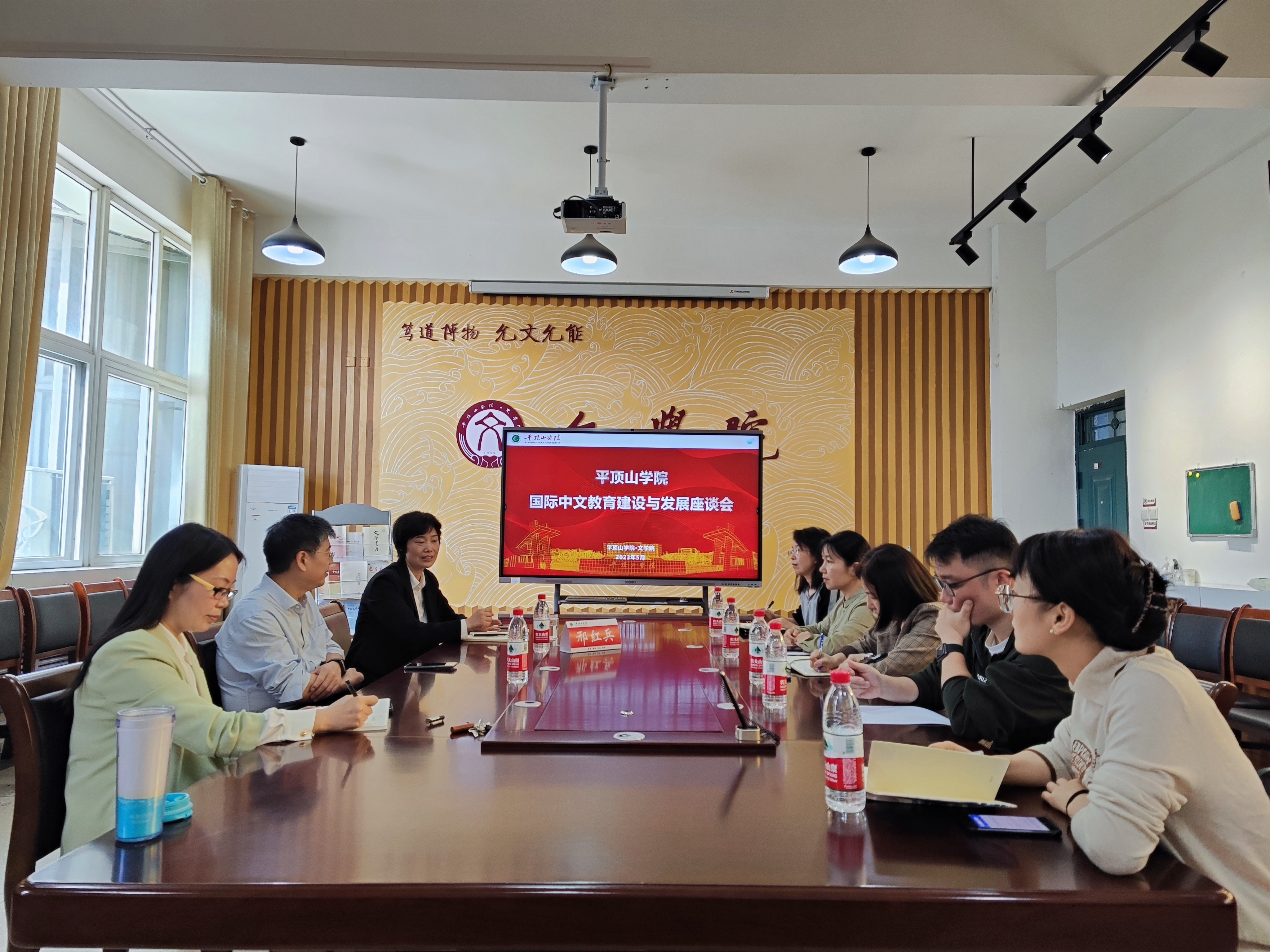报告开始前,邢红兵教授同文学院语言教研室及学校其他相关专业教师进行座谈,共同探讨国际中文教育建设与发展的前景。邢红兵分享了他在研究中的几点感想,为我校国际中文教育事业的建设提出了中肯建议。参加座谈的老师们在交流中也了解到很多语言学方面的前沿知识。