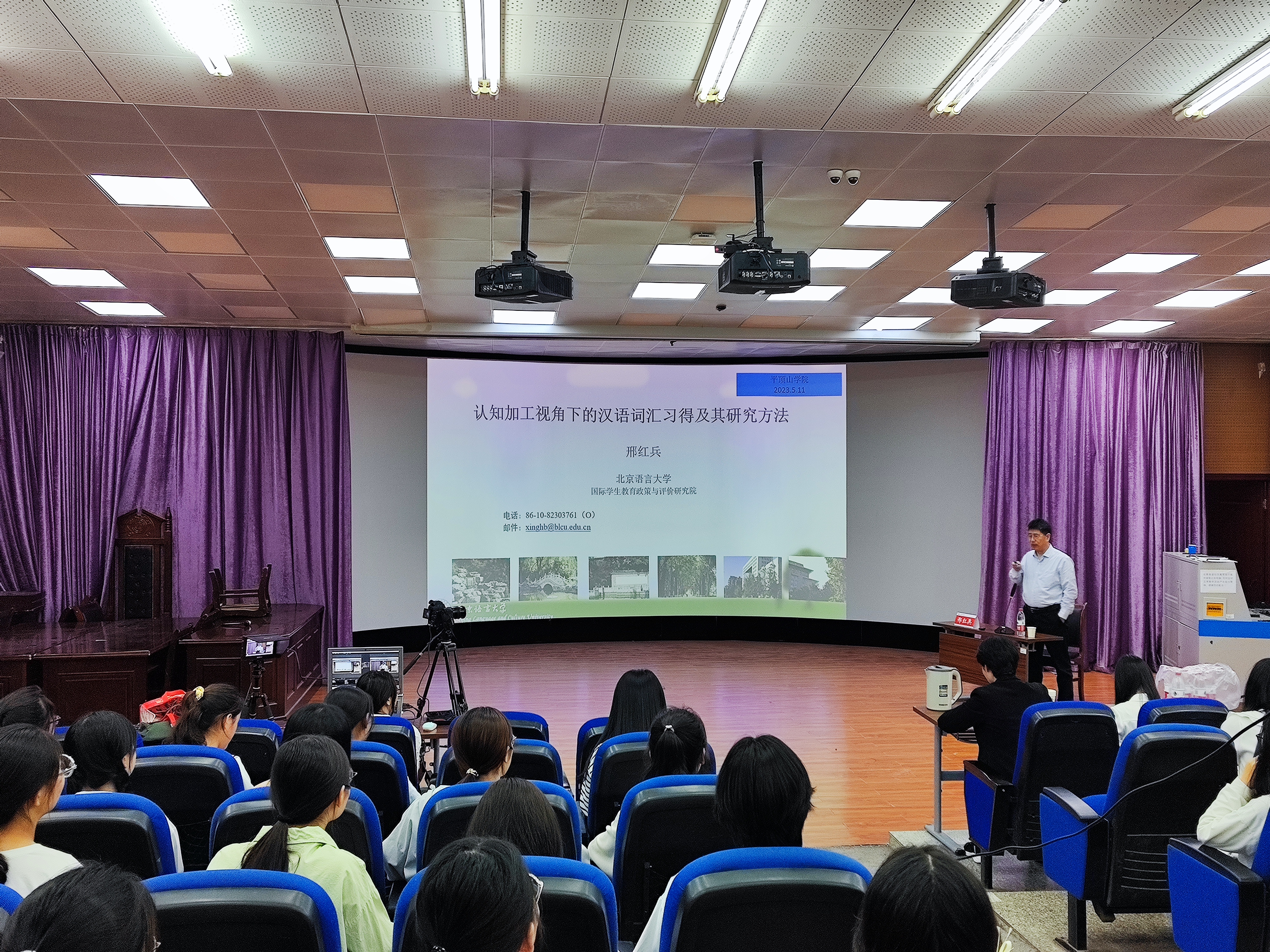 为加强同学们对汉语言研究的认识,提升同学们的专业能力与知识素养,5月11日下午,我院邀请北京语言大学教授邢红兵作了题为《认知加工视角下的汉语词汇习得及其研究方法》的专题报告。文学院汉语国际教育及其他院系相关专业师生150余人参加了报告会。报告会由文学院副院长王惠主持。