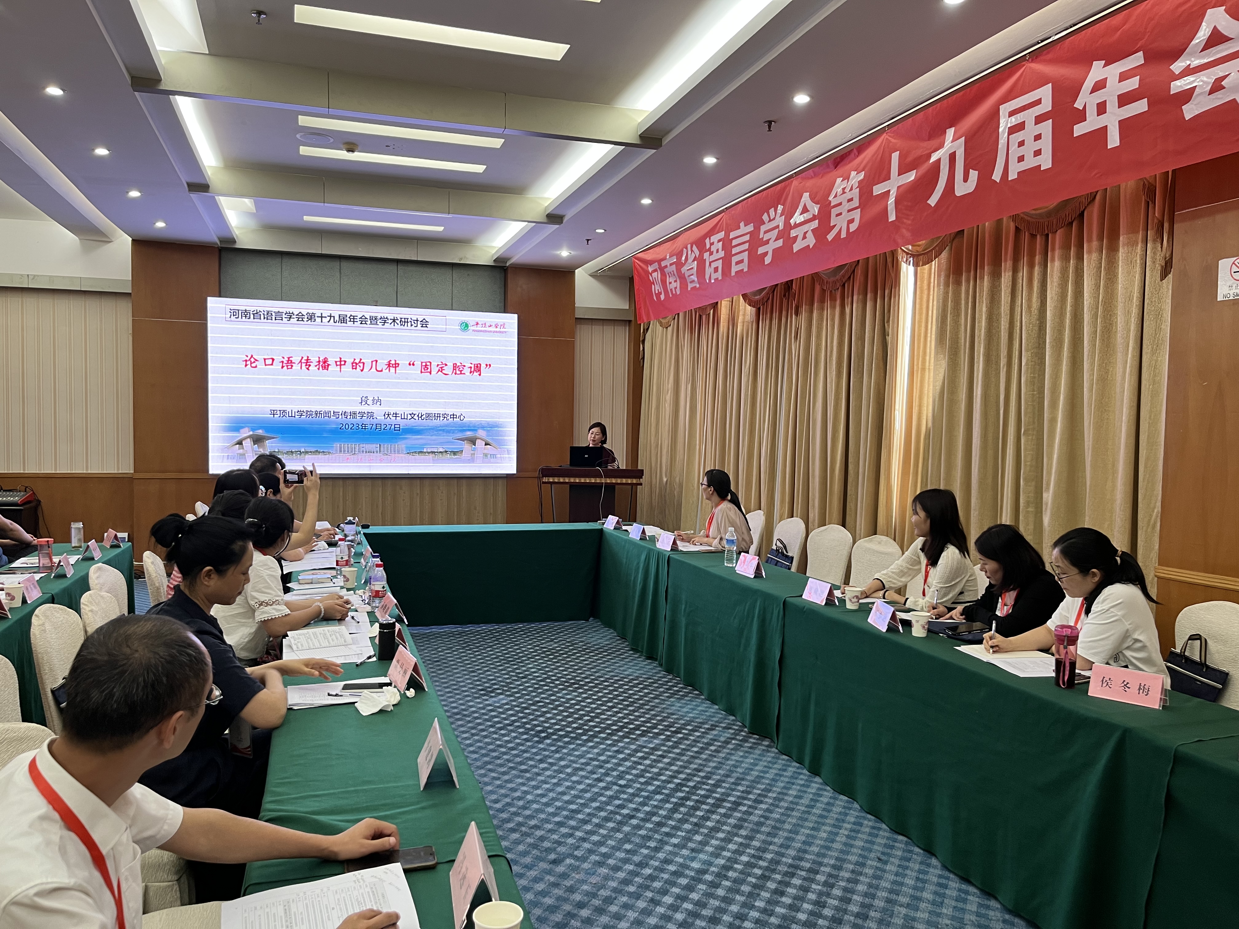 7月27日,河南省语言学会第十九届年会暨学术研讨会在漯河许慎文化园开幕。当天,来自30余所高等院校、政府单位、新闻媒体等百余名语言文字工作者参加了开幕式。河南省语言学会常务理事、我校新闻与传播学院副院长、伏牛山文化圈研究中心主任段纳教授,河南省语言学会会员、我校文学院副院长王惠副教授应邀参会。