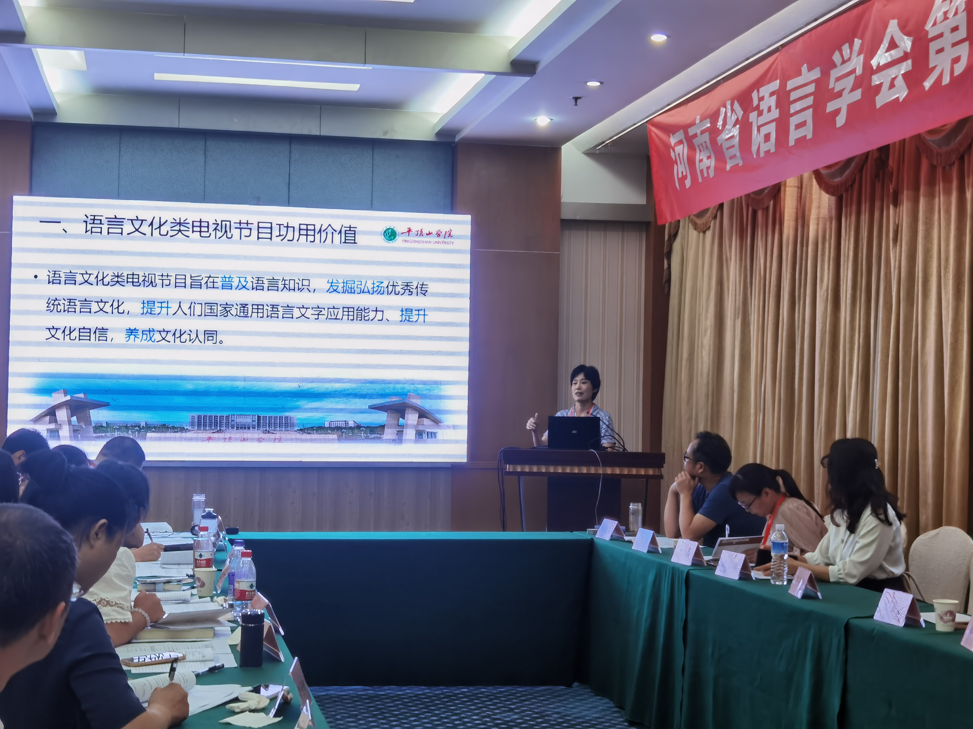 研讨会上,段纳作了《论口语传播中的几种“固定腔调”》的报告,交流探讨了汉语口语在传播过程中形成的四种固定腔调,为语言教学、播音从业者提供必要的帮助;王惠作了《语言文化类电视节目对语言文字知识普及教育的启示研究》的报告,分析了语言文化类电视节目对语言文字知识普及的重要作用。