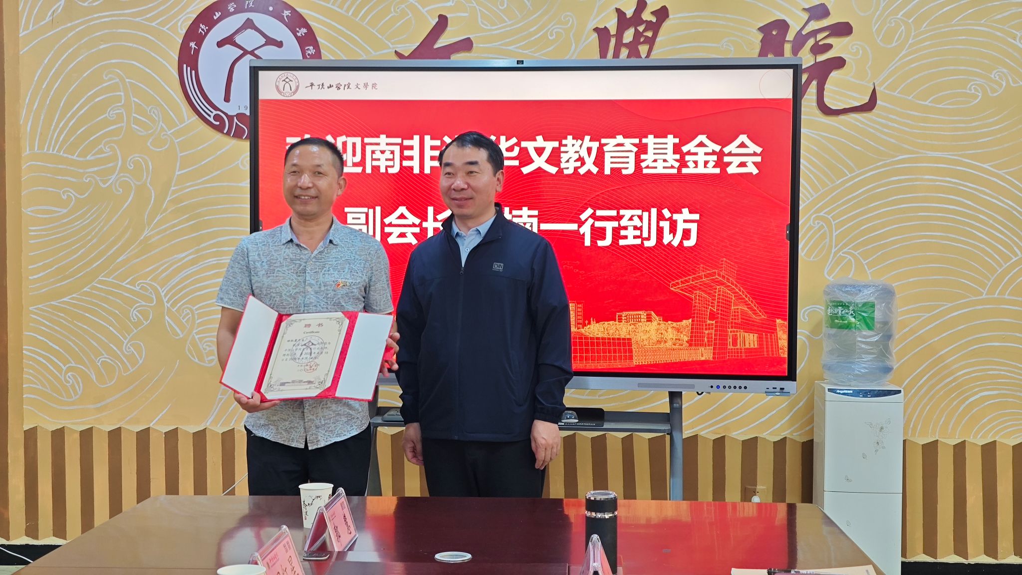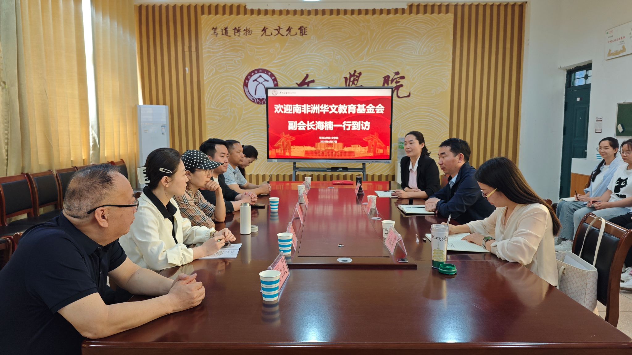孙振杰向大家简要介绍了文学院发展历程。他指出,文学院经过近半个世纪的发展,实现了由开设师范专业到大专升本科,再到成功获批专业硕士点的重大跨越。他表示,文学院国际中文教育团队与省市侨办通力合作,积极承担面向南非等全球南方国家的国际中文教育项目,与南非树德书院等海外教育机构共建实践教育基地,为南非等国的中文学习者送去了贴心、专业的教学服务,传播了中华文化,促进了中外文明互鉴。他强调,我院后续会根据南非等国中文学习者的需求,修订人才培养方案,改进课程设置,动态调整学生实习时间,精准对接海外市场需求,服务海外中文学习者,助力学生更好发展。他展望了我院国际中文教育未来发展规划,包括开展留学生教育、到国(境)外联合办学、到海外开办东坡书院,希望与南非等国的华文教育基金会、教育机构开展深度合作,开拓丰富多样的“中文+”教学项目,传播中医、书法、武术、传统技艺等传统文化,助力中外交流走深走实。