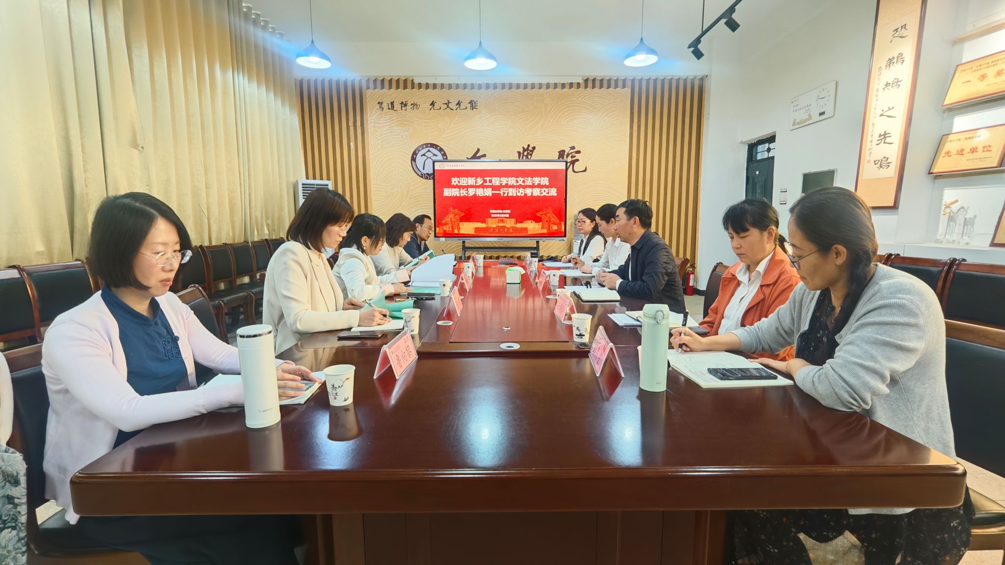 3月26日下午,新乡工程学院文法学院副院长罗艳娟一行4人到我院考察交流。座谈会在文学院1301会议室举行,文学院院长孙振杰,国际中文教育教研室、文学与文献学教研室、写作教育教研室负责人及教师代表参加。座谈会由文学院副院长王惠主持。