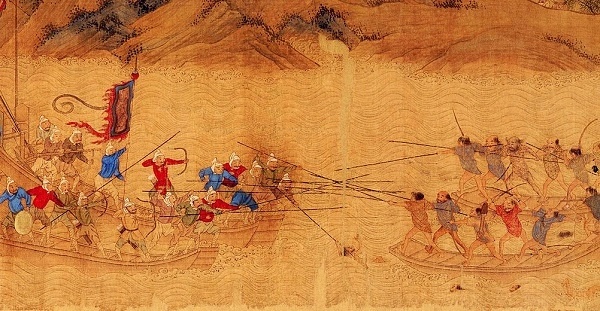 【明】仇英《抗倭图卷》局部,绢本设色,纵31.1厘米,横572.7厘米,国家博物馆藏