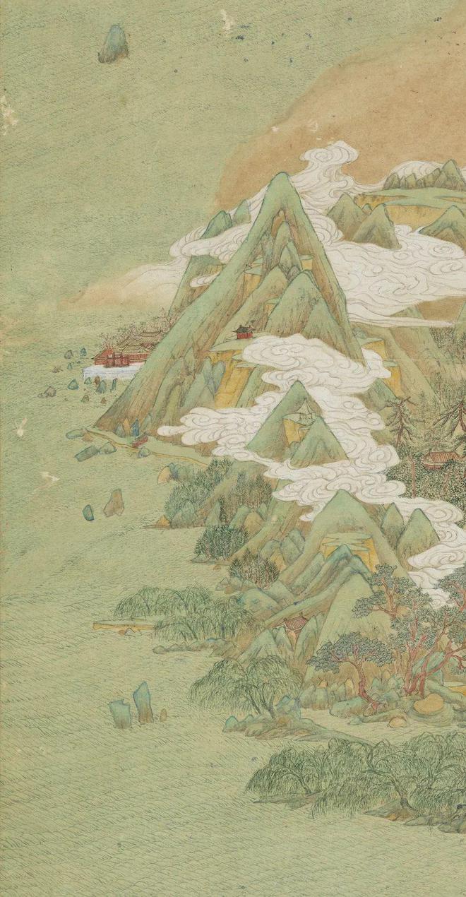 【明】文伯仁《方壶图》(局部),纸本设色 31.8x120.6cm,台北故宫博物院藏