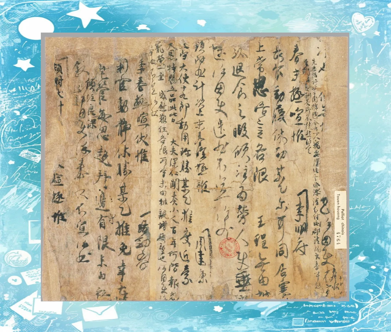 从上到下依次是敦煌遗书、居延汉简、四库全书