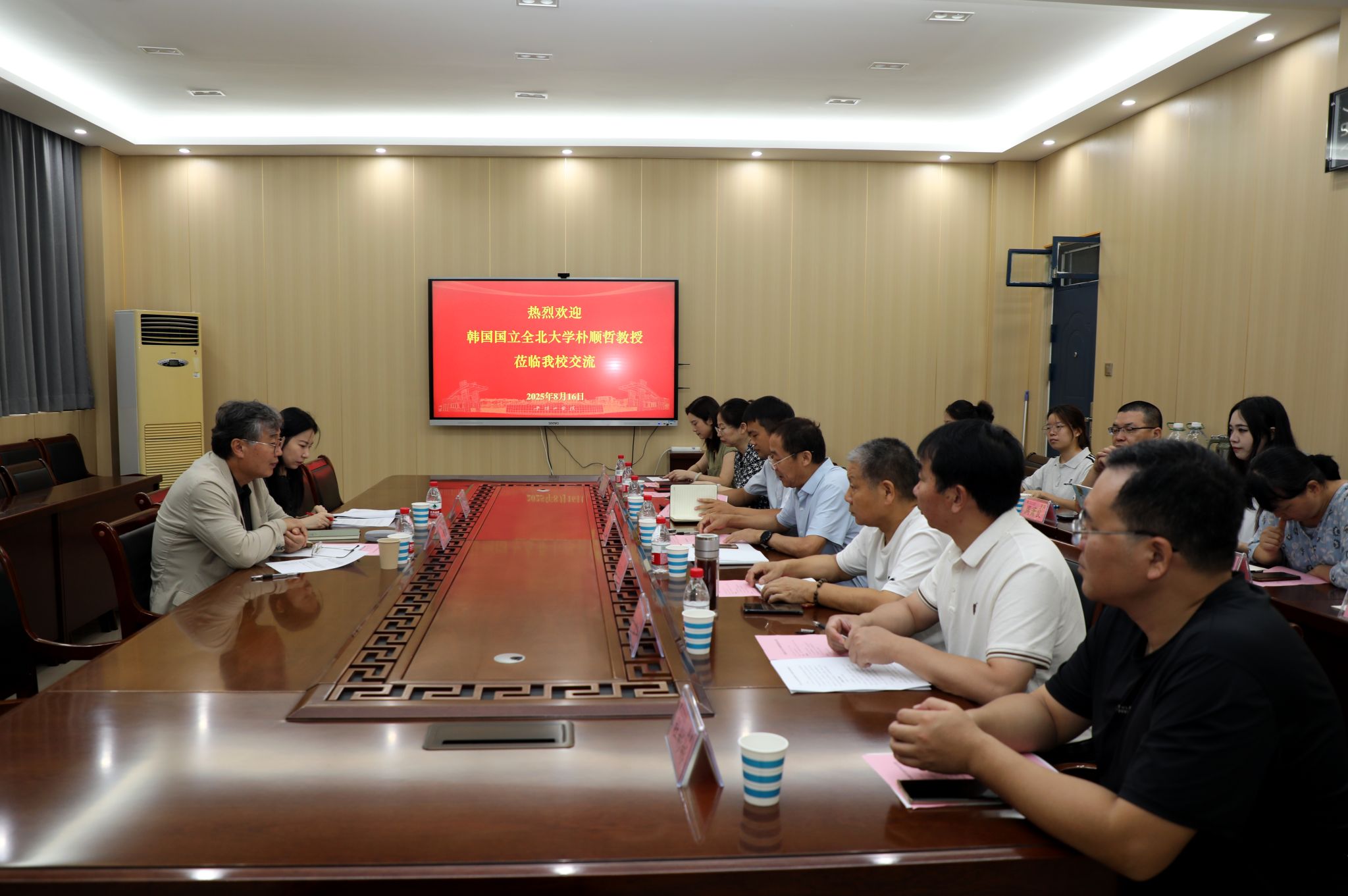 8月16日上午,我校在办公楼303会议室举行欢迎仪式,欢迎韩国国立全北大学朴顺哲教授来校开展三苏文化学术交流。副校长于长立,国际交流与合作中心、文学院、伏牛山文化圈研究中心等部门负责人及相关教师参加。仪式由国际交流与合作中心副主任赵婧主持。