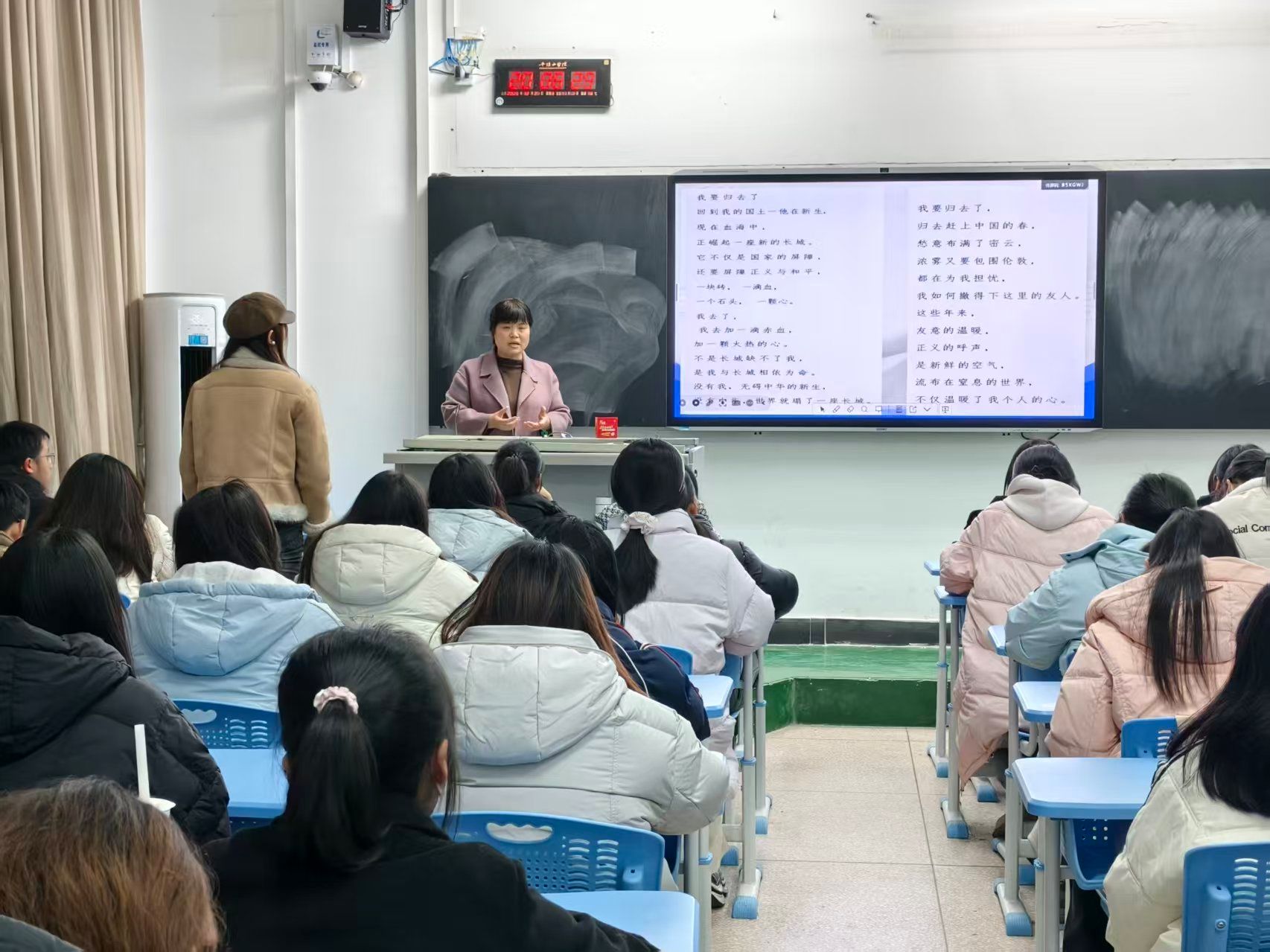 今年恰逢王礼锡先生为国捐躯八十六周年,本次报告以文学作品为载体,通过对王礼锡诗歌的具体赏析,串联起波澜壮阔的抗战历史,使同学们体会到当今和平生活的来之不易,加深了大家对诗人爱国精神的理解,激发了大家铭记历史、缅怀先烈的责任与担当。