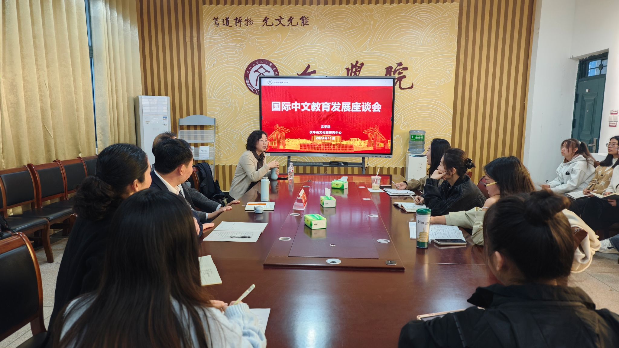 当天下午16:30,在文学院1301会议室,郭熙教授与市政府侨办负责人,我校伏牛山文化圈研究中心、文学院、新闻与传播学院师生举行座谈,就中华文化在海外的传承路径,海外华侨学习中文的驱动力、国际中文教师创新教学方式等问题进行了深入探讨。针对师生提出的问题,郭熙教授给出了建设性意见,第一,传播中华文化要思考时代特征,既要考虑传统的,更要考虑新时代的;第二,国际中文教育要勇敢引入数字时代的新技术、新方法,创新思路,开拓教学手段;第三,教学内容要及时更新,对接真实需求进行调整;第四,教学理论与教学实践需有机结合,重视教育实习等实践教学活动的作用。