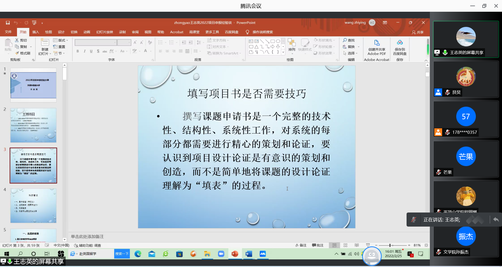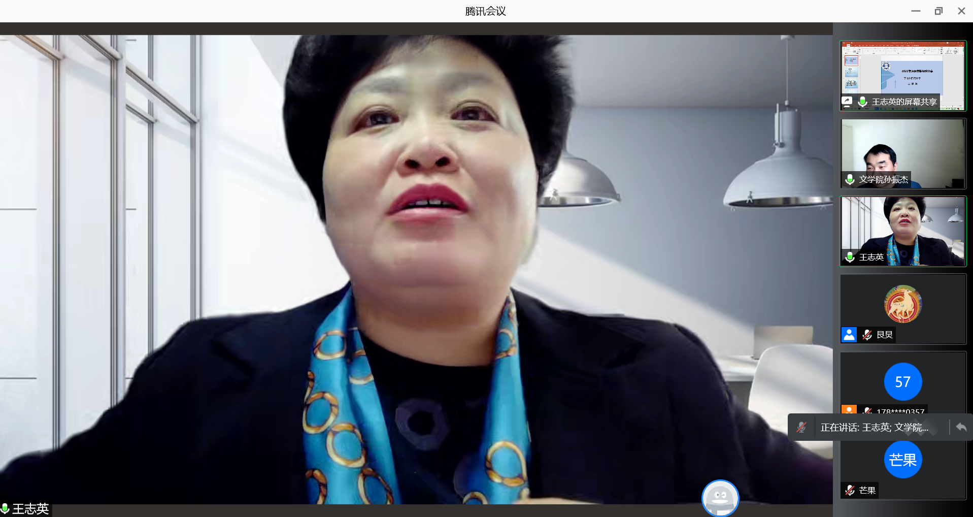 2月25日下午,文学院2022年度国家社会科学基金项目申请辅导报告会通过腾讯会议举行。会议邀请天津外国语大学硕士生导师王志英教授作报告。文学院院长孙振杰、新闻与传播学院副院长王冰、两个院系的高层次人才以及天津外国语大学相关教师参加会议。文学院副院长赵焕亭主持报告会。