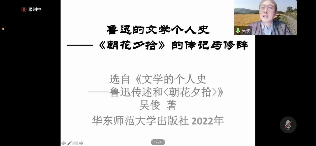 12月19日,南京大学吴俊教授应邀作了题为《鲁迅的文学个人史——《朝花夕拾》的传记与修辞》的线上学术报告。文学院师生200余人参加了报告会。报告会由文学院院长孙振杰主持。