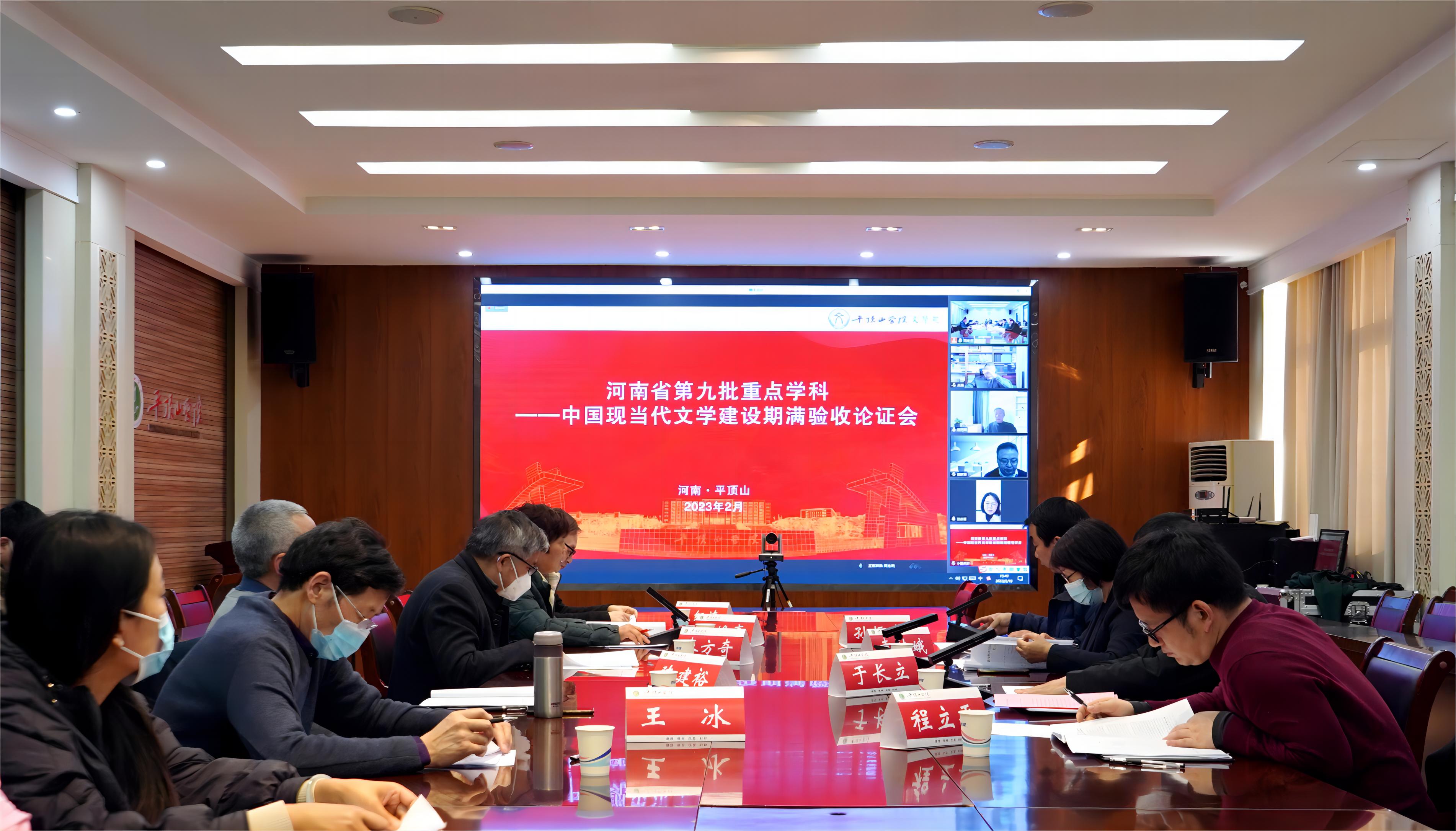 近期,河南省教育厅对全省各高校、各单位第九批省级重点学科开展建设期满验收工作。2月19日下午,文学院在办公楼329会议室召开中国现当代文学重点学科建设期满验收论证会,此次会议以“线上+线下”混合的方式进行。北京师范大学文学院中国现当代文学学科负责人刘勇,河南大学文学院院长武新军,山东师范大学中国古代文学学科带头人陈元锋,信阳师范学院研究生处处长沈文慧,平顶山学院党委副书记袁桂娥,平顶山学院副院长于长立,平顶山学院科研处副处长程立平,平顶山学院新闻与传播学院副院长王冰,平顶山学院伏牛山文化圈研究中心原副主任陈建裕,平顶山学院广播电视艺术学重点学科带头人秦方奇,平顶山学院中国现当代文学重点学科带头人赵焕亭,以及中国现当代文学学科组成员20余人参加了论证会。会议由文学院院长孙振杰主持。