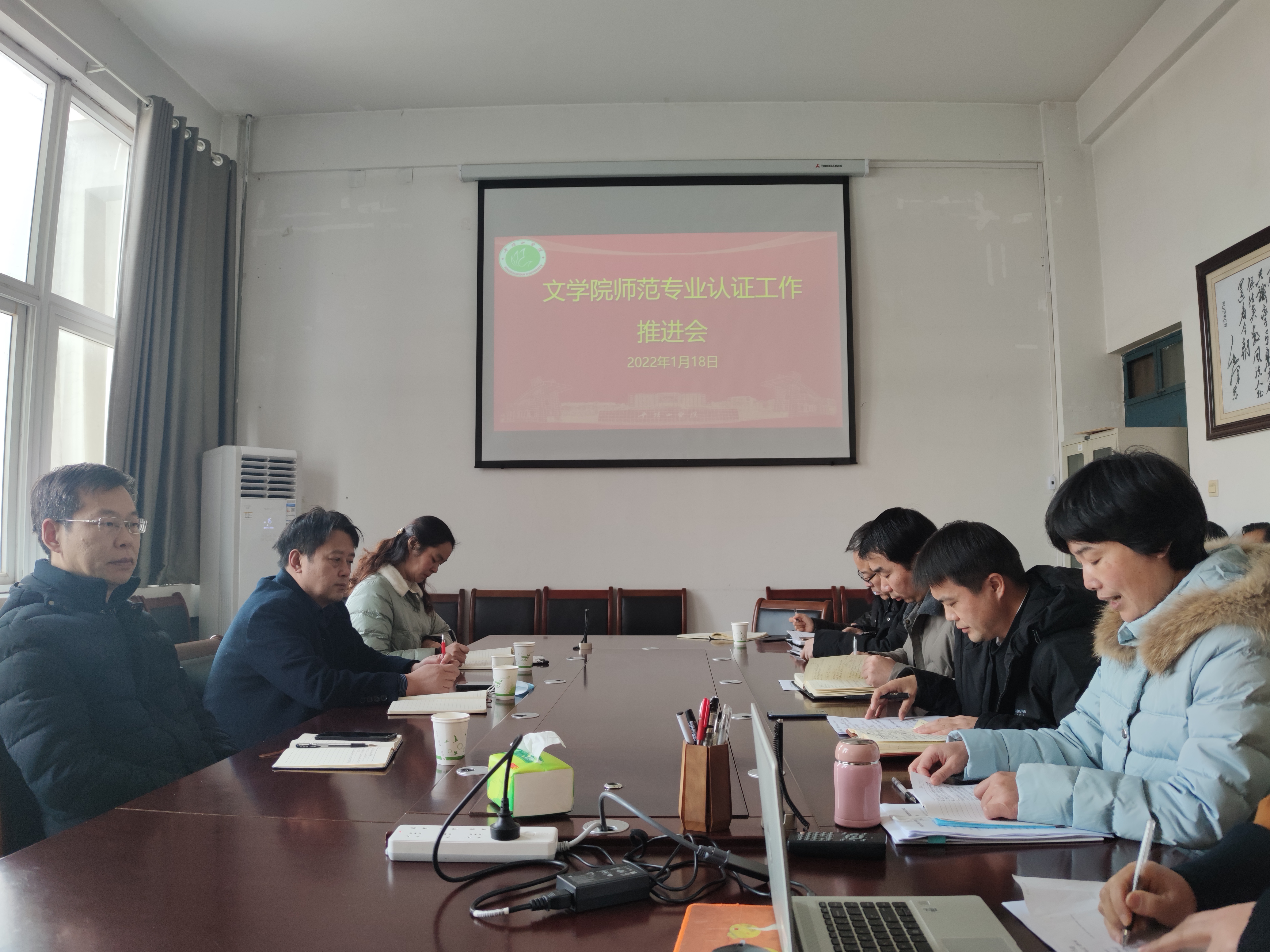 1月18日下午,文学院1号教学楼1322会议室召开师范专业认证工作推进会。校领导李波,教务处、教学督导与质量评估中心负责人出席会议,文学院党政领导班子及汉语言文学专业认证工作自评报告撰写组、材料准备组、条件保障组成员参加了会议。会议由文学院党委书记申自强主持。