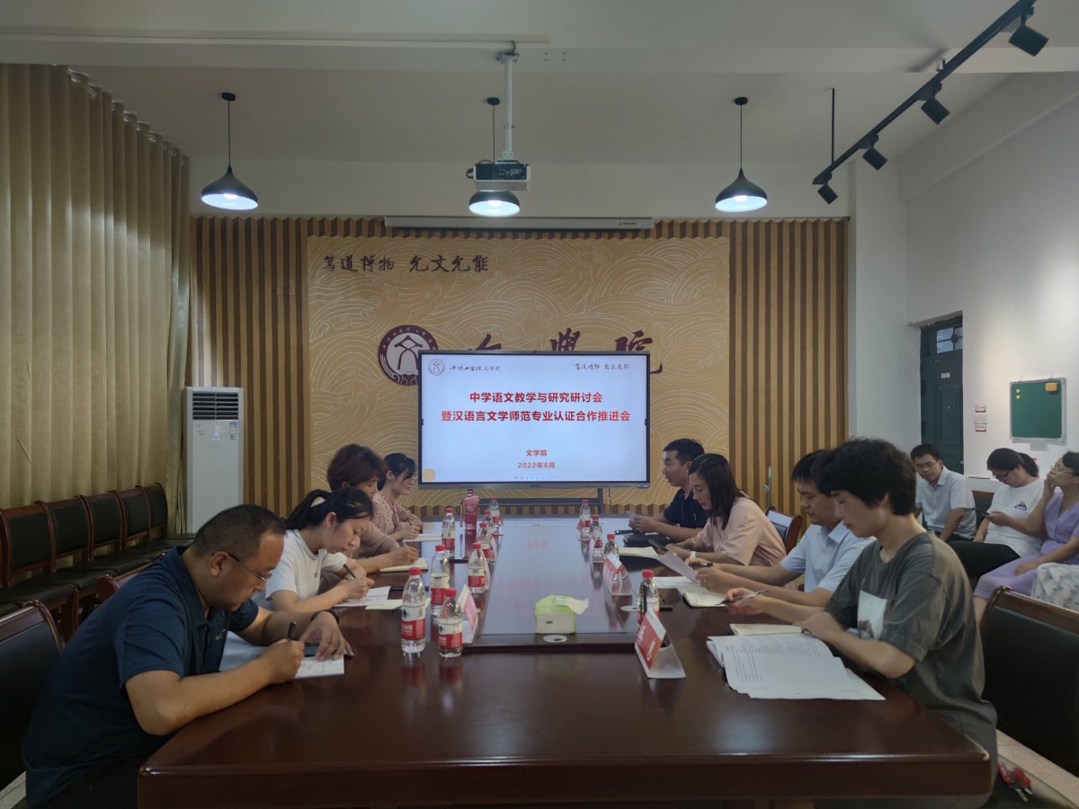 8月4日,中学语文教学与研究研讨会暨文学院汉语言文学师范专业认证合作推进会在文学院1301会议室召开。平顶山市第一高级中学初中部校长席明焕、高中部和初中部语文教师代表、平顶山学院教务处副处长郭利利、文学院院长孙振杰、副院长王惠、部分专业教师参加会议。会议由文学院党委书记申自强主持。
