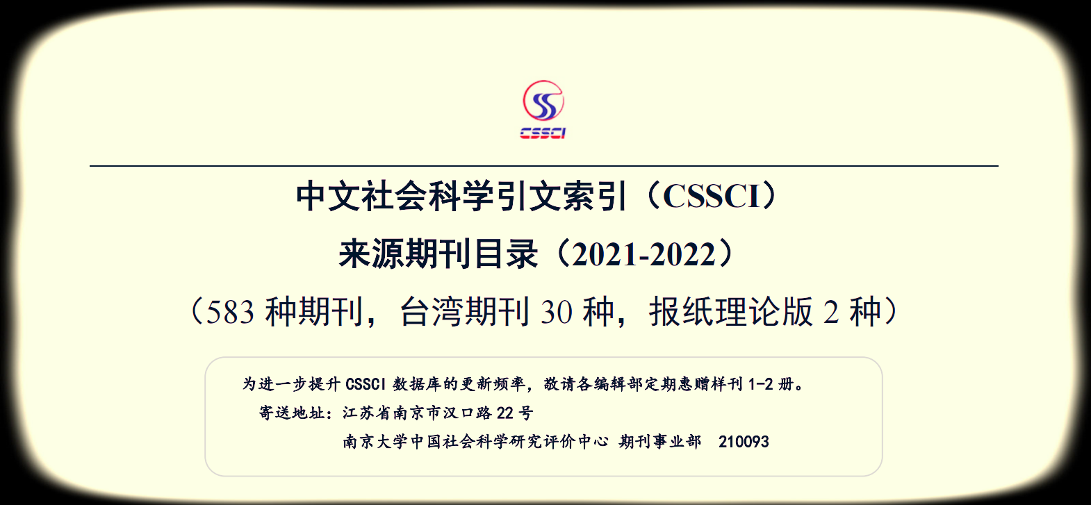 名单目录 | CSSCI来源期刊目录(2021-2022)