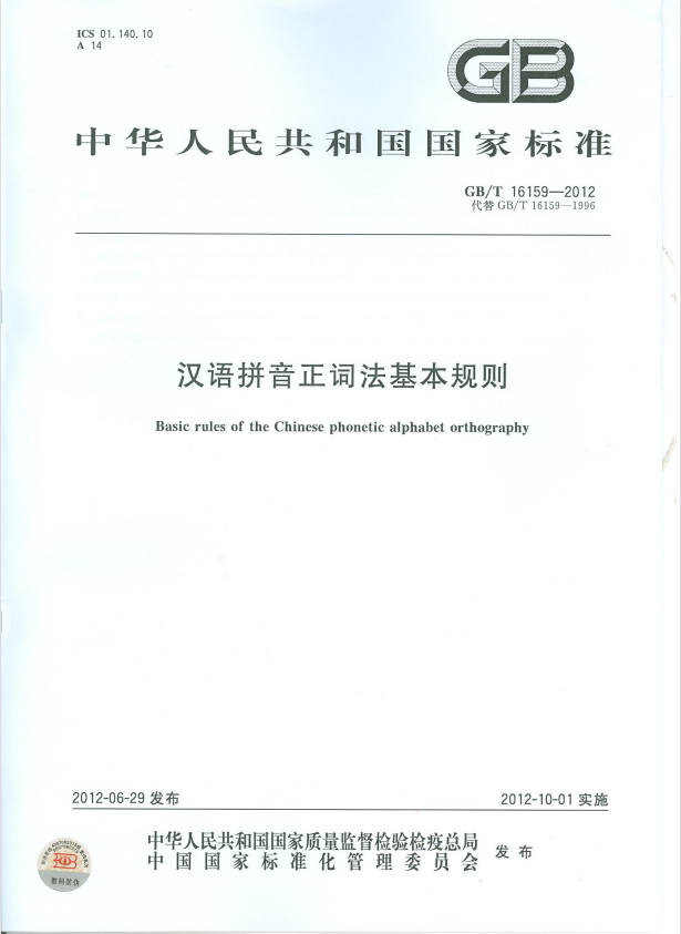 标准规范 | 汉语拼音正词法基本规则