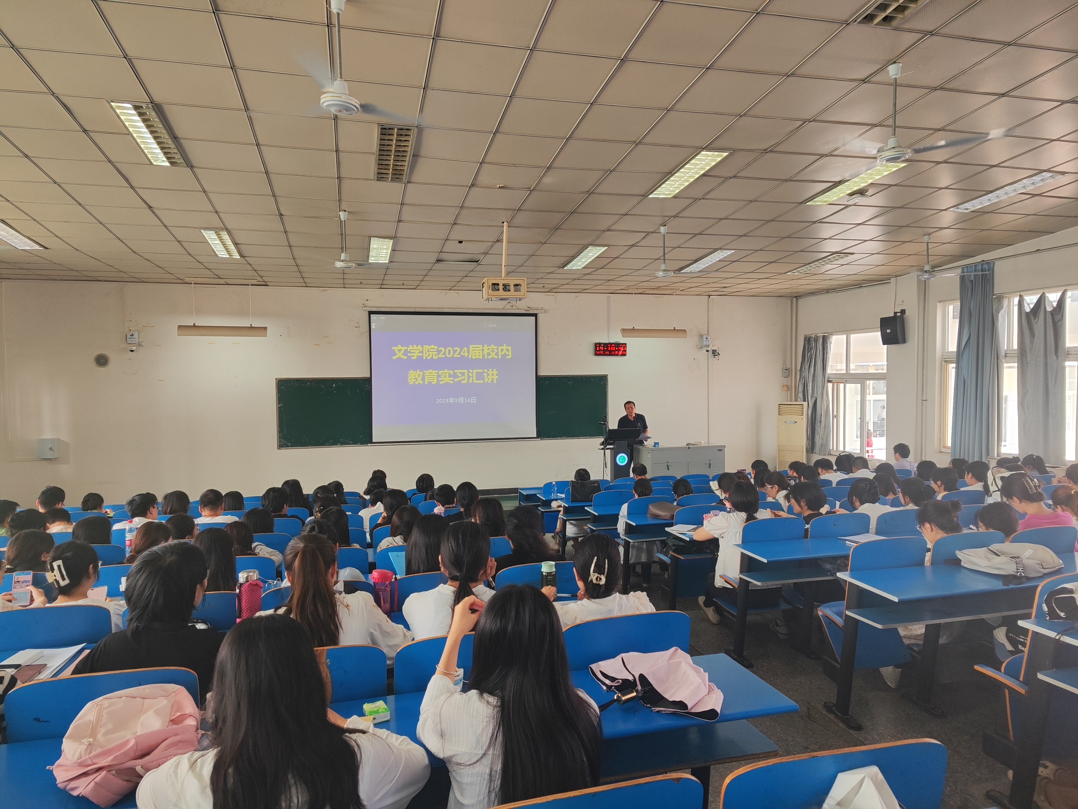 按照《汉语言文学专业人才培养方案(2020版)》《汉语国际教育专业人才培养方案(2020版)》的要求,我院2020级汉语言文学、汉语国际教育专业第八学期(2023-2024学年第一学期)应该开展教育实习工作。9月14日下午,我院2024届师范专业毕业生校内教育实习大汇讲在2306教室举行,文学院副院长赵焕亭、校内教育实习指导教师及汉语言文学、汉语国际教育专业毕业生200余人参加活动。该活动由文学院教学科研办公室主任杜彬彬主持。