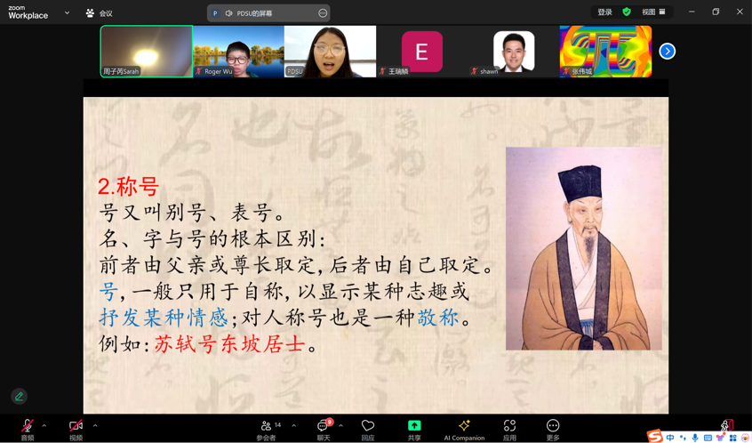 平顶山市与苏轼渊源很深,苏轼去世后葬在平顶山市郏县,该县有著名景区三苏园。据悉,从本学期开始,我院青鸢国际中文教育团队面向加拿大成年中文学习者、美国低龄中文学习者开设“华文鉴赏与诵读”课,以更好实现我院立足平顶山,服务平顶山的办学宗旨。这一课程的开设不仅是我院促进东坡文化传承与发扬的创新之举,更是在国际中文教育领域对中国古典诗词传播方式的积极探索。