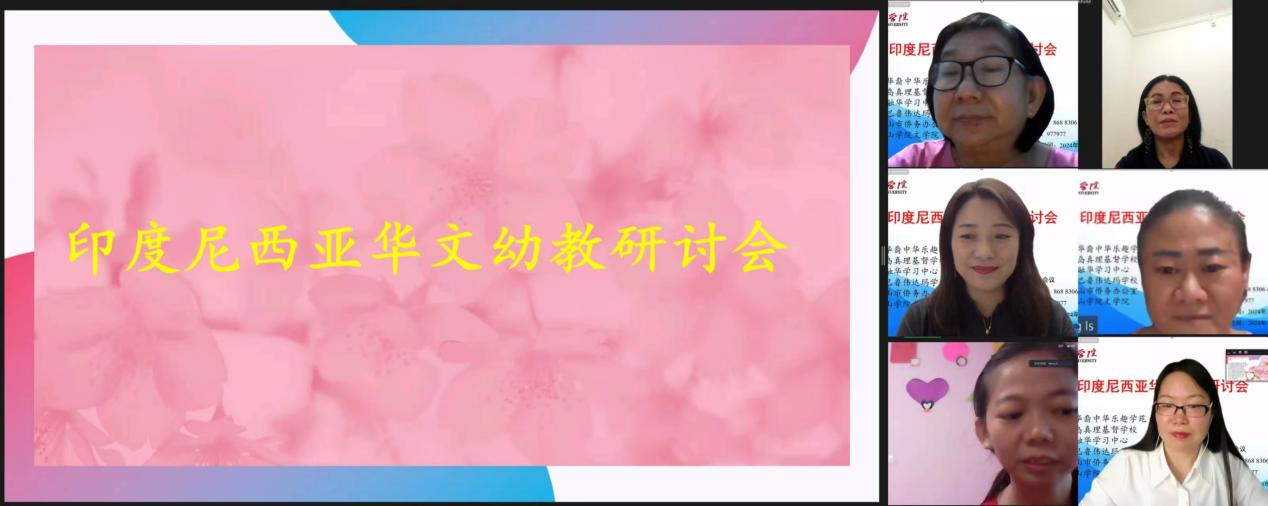 北京时间2024年3月3日下午,我院在ZOOM平台线上举办印度尼西亚华文幼教研讨会。印尼华裔中华乐趣学苑主席林明珠、荣誉主席郑丽杰,融华华文学习中心校长林丽英,印尼龙目岛真理基督学校、北干巴鲁伟达玛学校和棉兰南洋之晖学校负责人,平顶山市政府侨务办公室科长杨果,我院语言教研室主任卢淑芳及国际中文教学团队师生代表40余人参加会议。会议由印尼中文教师郑盛嫡主持。