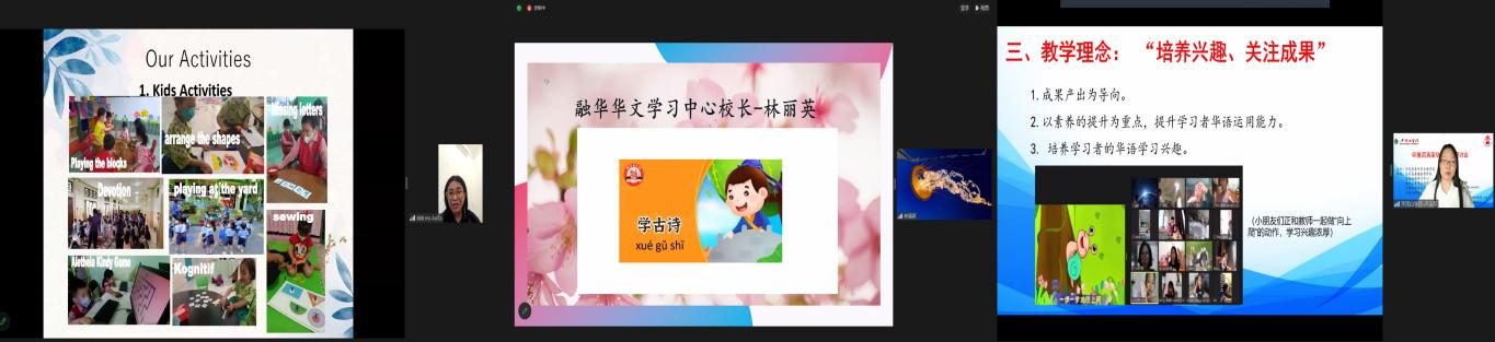 印尼龙目岛幼儿园校长Ms AnitaMs Anita介绍了本校课程安排、活动设计、幼儿才艺展示、评估体系建设、教师团队建设、语言文化比赛等情况,阐述了他们的华文幼教办学理念。印尼棉兰南洋之晖学校与北干巴鲁伟达玛学校也做了教学介绍,展望了华文教育发展前景。