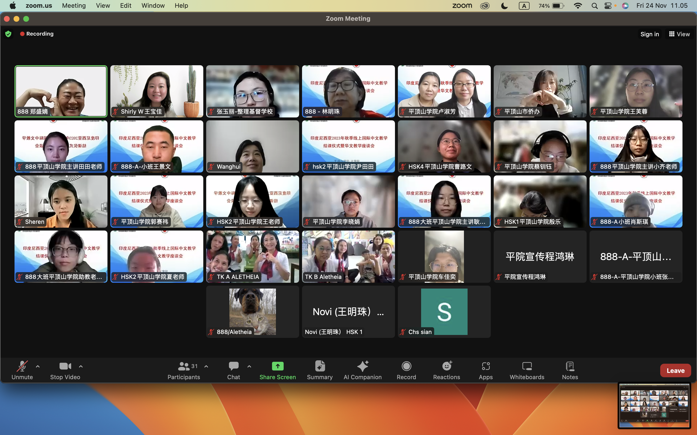 座谈会上,双方教师代表围绕中文课程线上教学互动策略、本土教师陪伴学习、线上中文课堂管理、零起点学习者教学设计、HSK讲练结合模式等内容展开交流讨论,印尼棉兰南洋之晖学校校长雷韵璇、龙目岛幼儿园校长Ms Anita、融华华文学习中心校长林丽英、印尼中文教师代表张玉丽、平顶山学院国际中文教育团队教师代表刘亚科作了发言,针对共性问题给出了具有可行性的解决方案。