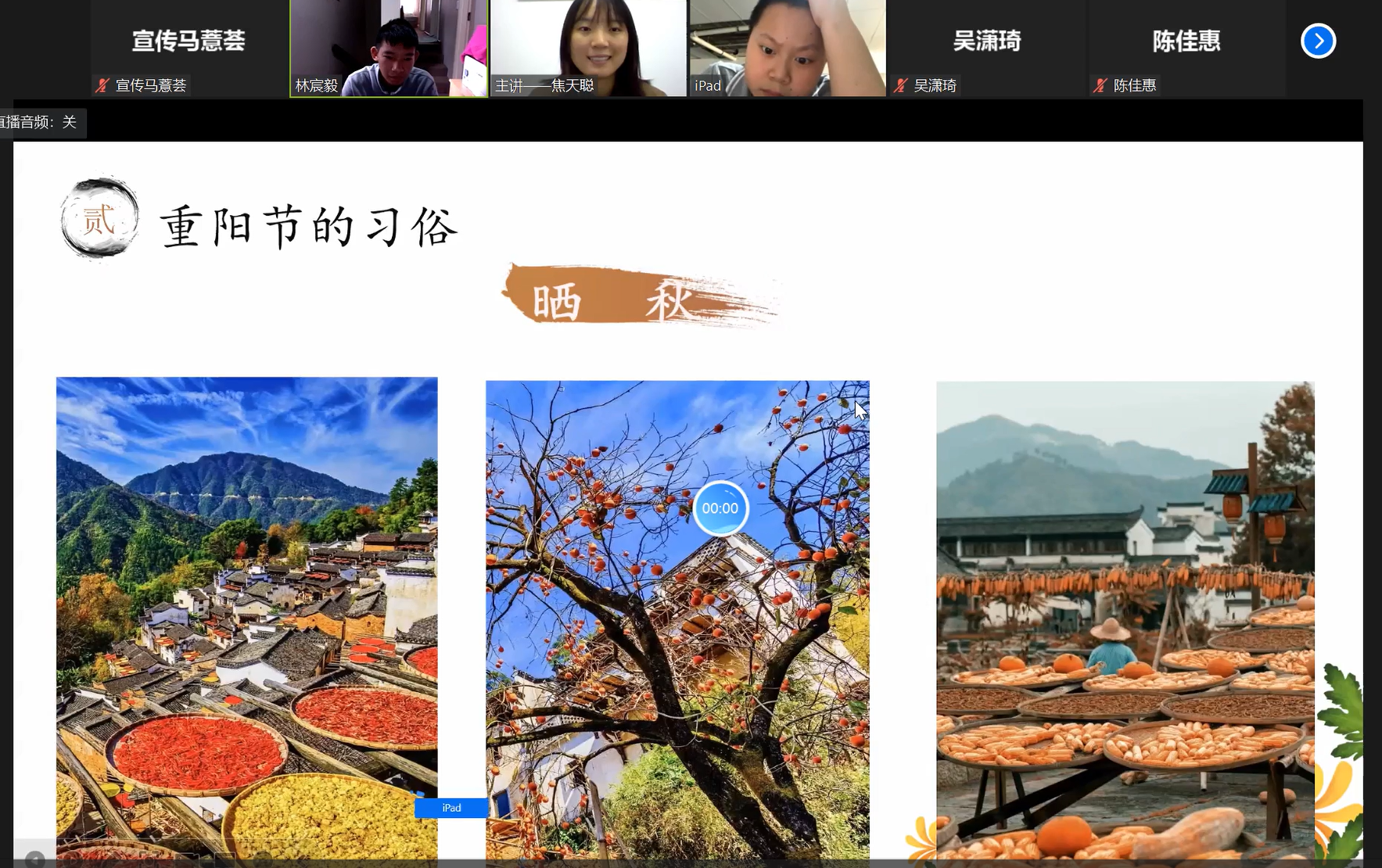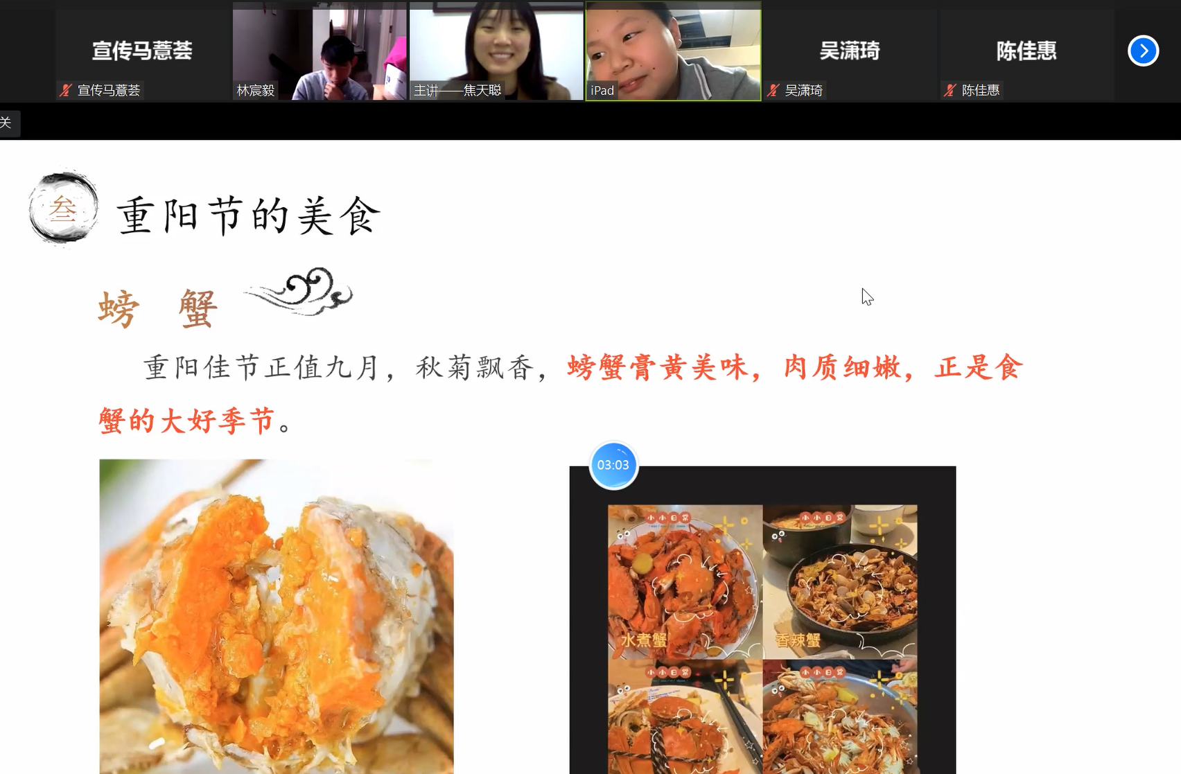 正值中国传统节日重阳节和霜降节气,项目主讲教师授课时分别采取了儿歌教唱、视频科普、图片介绍、交流讨论、语文数学相融合等方式。“独在异乡为异客,每逢佳节倍思亲。”每逢佳节,漂泊在外的人总会想念故乡,家人也忘不了记挂在外的游子,冷暖常记心间。在面向印度尼西亚学员的云端课堂,主讲教师以一首儿歌开启学习之旅。儿歌轻快的旋律搭配生动的画面,主讲教师为学员们讲解了重阳节和霜降节气的时令意义、民俗风情,让身处海外的学员们对重阳节有了初步的印象,对知冷暖有了更深的理解。重阳节又称“老人节”“登高节”,唐代《千金月令》说“重阳之日,必以肴酒登高眺远,为时宴之,赏以游秋志。”在印度尼西亚口语课上,主讲教师以重阳节民俗知多少导入新课,为学员们列举登高、祭祖、敬老、晒秋、赏菊等习俗,并为大家讲解了这些习俗对于中国人特有的文化意义。针对秋季时令水果柿子的软硬与饮食文化的关系,老师和同学们展开了讨论,让课堂气氛活跃了许多。令人印象深刻的是南非中文数学课的老师,她们将重阳节习俗与数学计算题融合起来,既宣传了我们的文化节日,而且寓教于学,使原本枯燥的数学课变得更有趣味。