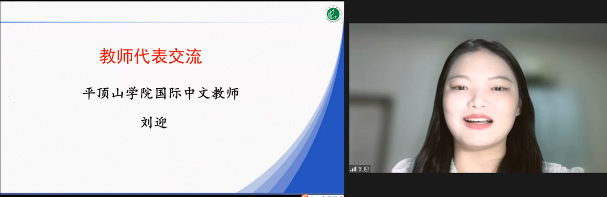 平顶山学院国际中文教育团队成员代表刘迎、张郅浩分别对各自的教学工作进行了总结和汇报,他们表示在今后的国际中文教学过程中会继续保持严谨的教学态度和科学的二语教学原则,为学生们上好每一堂中文课。