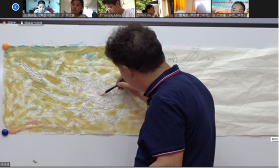 国画是中国传统绘画形式,在内容和艺术创作上,体现了古人对自然、社会及与之相关联的政治、哲学、文艺及自然等方面的认识。我校陶瓷学院孙晓岗博士带领学员初步了解了笔性、墨性与国画颜料的性能,帮助大家掌握基本绘画技巧,学会国画基础调色运笔方法。国画课《敦煌飞天》《唐卡》,共分为赏析和学画两个部分,孙老师在镜头前讲解干湿浓淡、勾线、构图用色等绘画元素,与线上同学分享飞天画、唐卡画的作画、填色步骤,同学们积极展示自己的画作,孙老师也对同学们的作品予以点评。孙晓岗老师通过网络把水墨画文化传播到五湖四海,学员们反馈获益匪浅,效果显著。