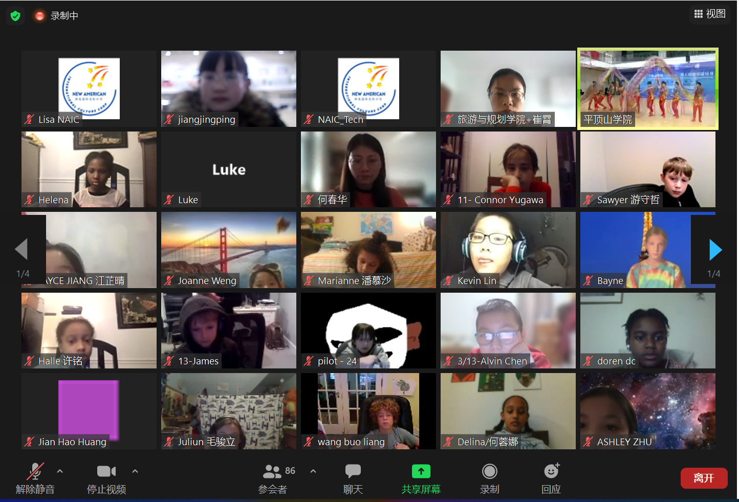 北京时间12月2日,由教育部中外语言交流合作中心主办,平顶山学院首次承办的2021“汉语桥——豫见鹰城,感知平院”线上团组交流项目在平顶山学院体育馆举行了开营仪式。平顶山学院国际交流与合作中心主任付岩岩、2021“汉语桥”项目活动合作伙伴——新美国际文化公司(New American International Cultural Corp,简称NAIC)主席兼总裁Lisa、平顶山学院文学院院长孙振杰、授课教师代表卢淑芳、“汉语桥”志愿者50余人与138名美国中小学生相聚云端,开启了领略中国文化之旅。开营仪式由国际交流与合作中心副主任王雁冰主持。