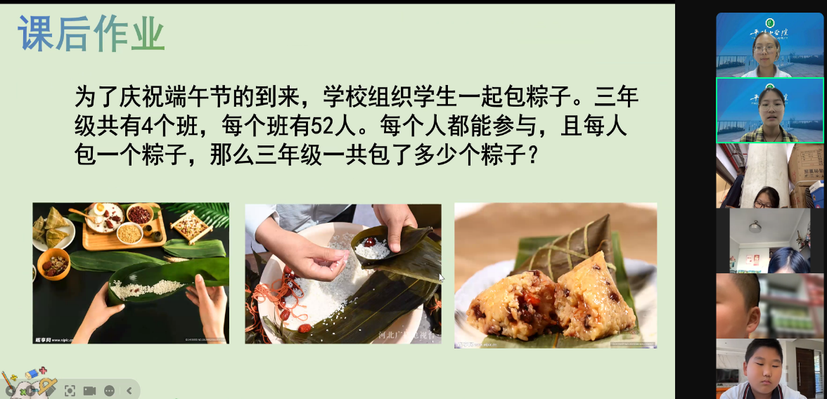 龙舟竞渡迎端阳,家家户户粽情长。在南非课堂上,主讲教师张罗丹以一段视频《端午很忙》拉开序幕。视频通过回溯端午节的历史,生动展现了端午节从先秦夏至祭神,到汉代以后融入祭祀屈原传说,逐渐形成“纪念+祈福”双重内涵的演变过程。在讲解端午节名称由来时,张老师图文并茂地阐释了端午节的文化特色,引导学生从简单观察中感受节日的文化厚度。在后续数学课程的讲解中,张老师设置了与端午节文化相关的数学题目,抽象的文化概念与具体的学科知识有机衔接,让学生在无形中受到了文化的影响。在饮食文化环节,张老师着重介绍了端午节俗食品体系,除了广为人知的粽子——其诞生与纪念屈原的历史典故紧密相连,还包括煎堆等特色点心,以及由黄瓜、黄鳝、黄鱼、鸭蛋黄和雄黄酒组成的“五黄”饮食传统。课程最后,张老师设置了与包粽子相关的课后习题,学生们在解答题目的过程中强化了端午的文化印象。