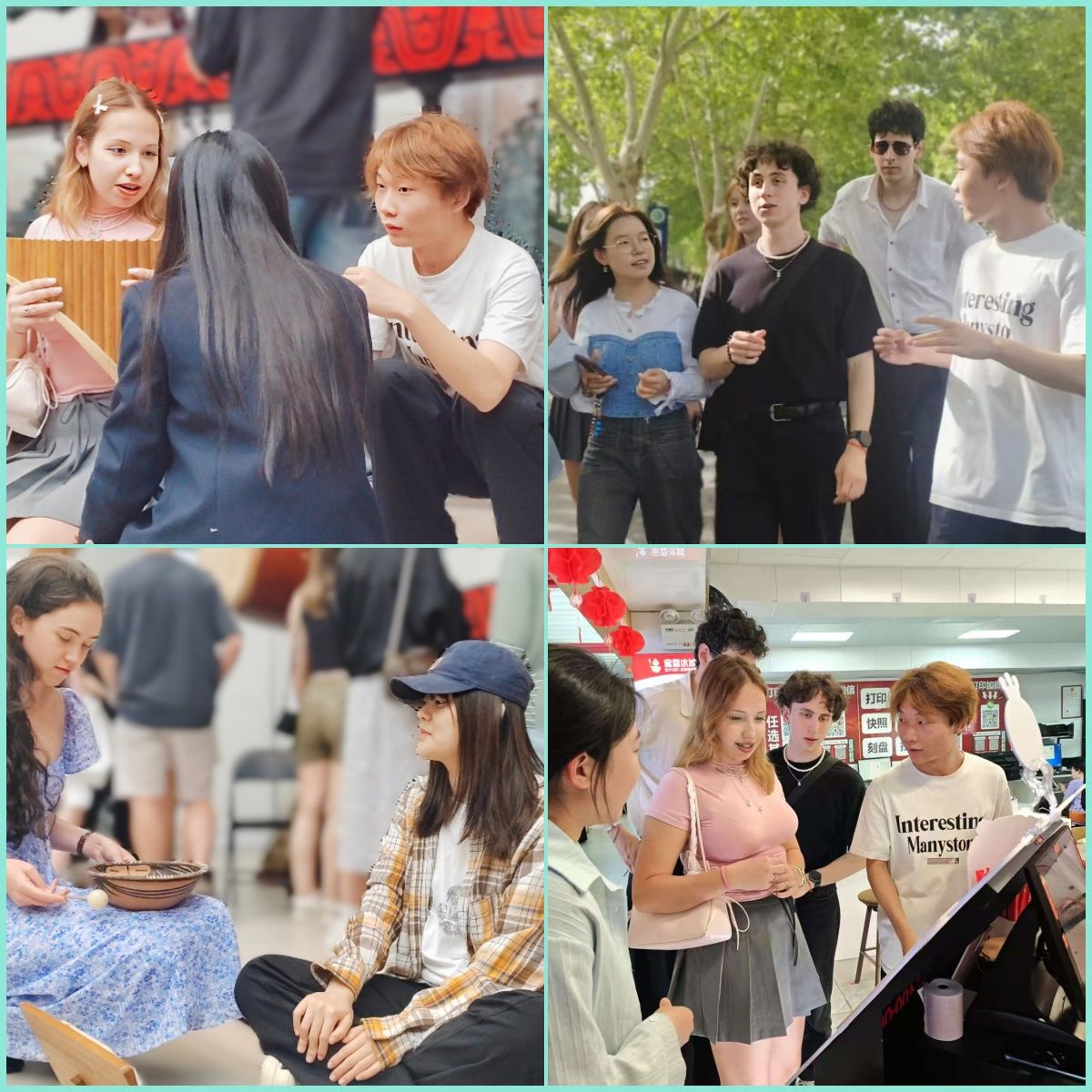活动尾声,研学团师生乘车返程,但仍有部分留学生表示意犹未尽,还想继续参观体验,青鸢国际中文教育团队的同学带领他们游览校园,并特别安排他们品尝我校食堂手工水饺、河南烩面等地道美食,前往白龟湖边观赏“平湖夕照”生态胜景。