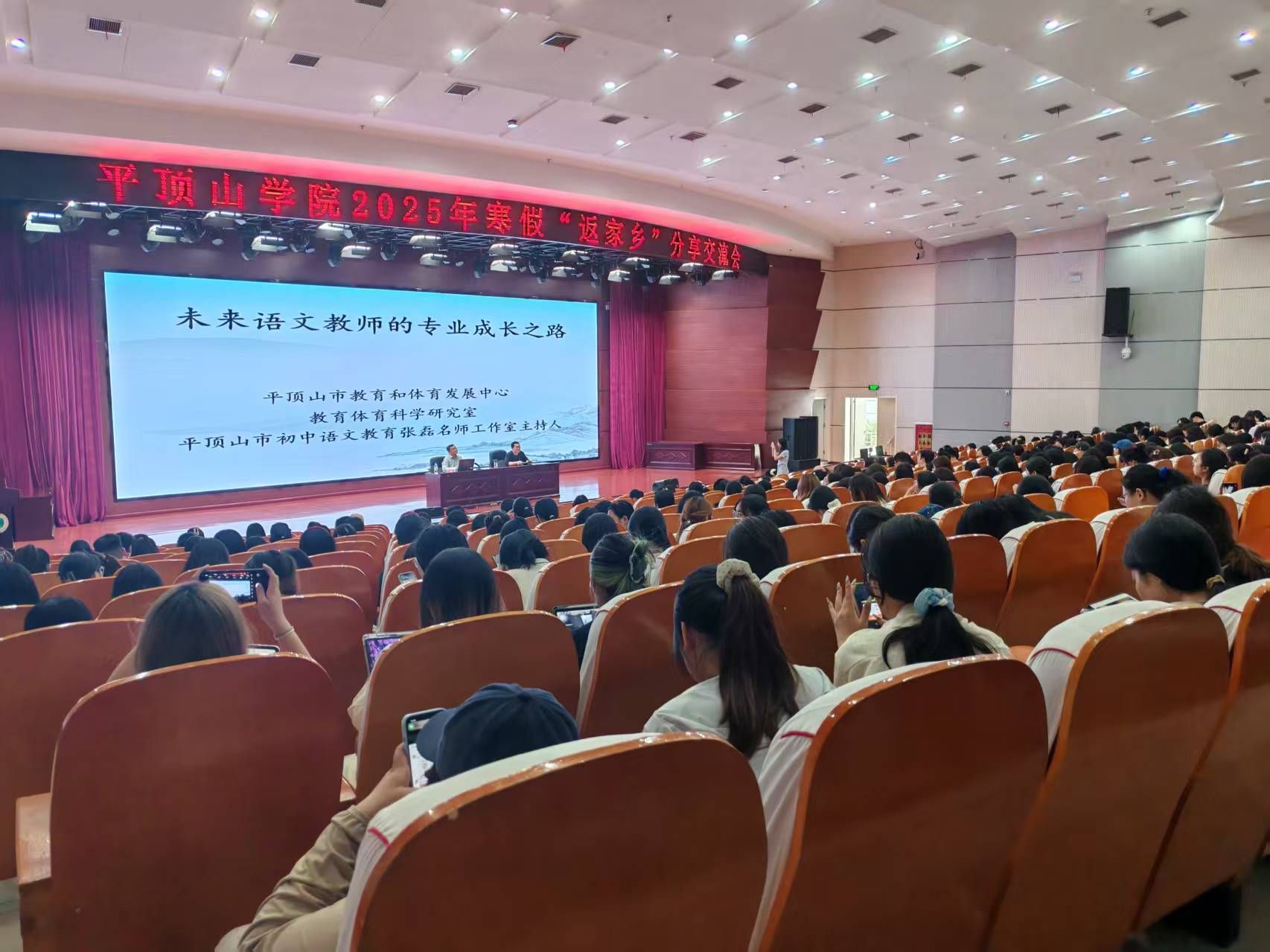 4月16日下午,文学院2025年师范专业集中教育见习专题报告在中心会议室教室举行。平顶山市教育和体育发展中心(以下简称“市教体发展中心”)研究员张磊受邀以《未来语文教师的专业成长之路》为题作报告。我院2022级汉语言文学、汉语国际教育专业学生300余人参加。报告会由文学院副院长杜彬彬主持。