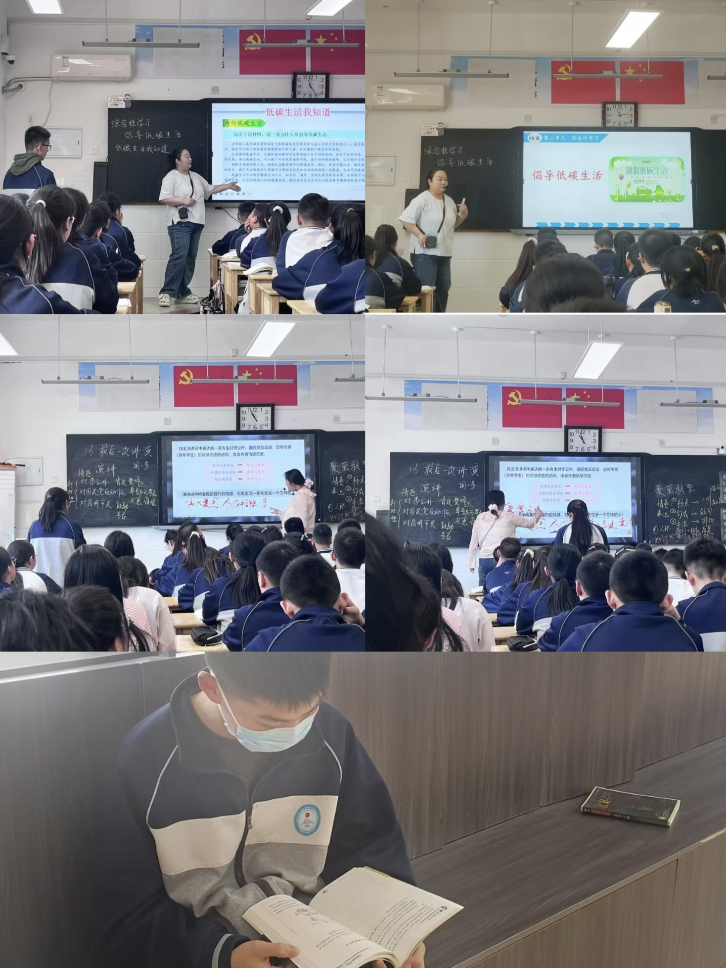 我院学生按照安排,被分为五个小组,分别进入五个班级听课观摩。课堂上,授课教师们通过生动的讲解和多样的教学方法,向我院学生展示了语文课堂的独特魅力,让我院学生对语文教学有了更深入的理解。其中,贾楠老师的综合性学习课——低碳生活,引导学生进行综合性学习,提高综合能力。贾老师通过多媒体展示、数据分析和小组讨论等多种教学方法,帮助学生深入理解低碳生活的概念和重要性。学生们积极参与讨论,分享了自己在日常生活中践行低碳理念的具体做法,提出了许多切实可行的环保建议。许一涵老师讲授《最后一次讲演》。她带来大家复习旧知,导入新课,引导学生分别探寻文中闻一多先生对李公朴、对反动派以及对昆明市民的情感,让学生找出文中的具体语句并分析其写作手法。学生们与老师积极互动,深情诵读课文,表达了自己对讲演内容的理解和感悟。