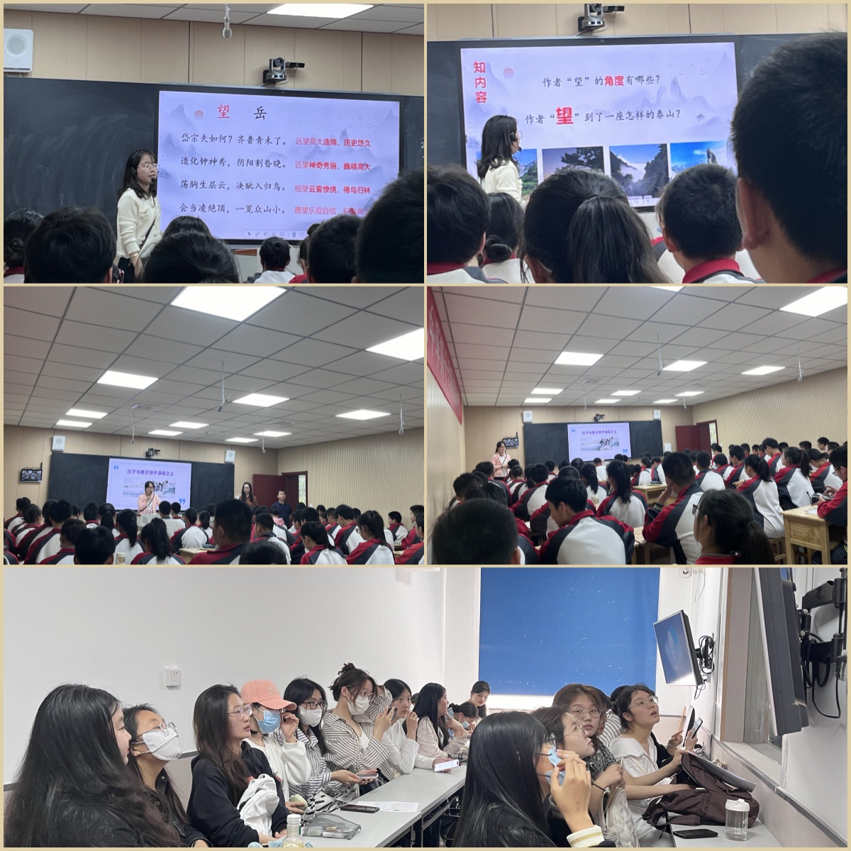 在九中录播教室,我院师生观摩了该校初中部八年级高老师、七年级张老师的语文公开课。高老师讲授《庄子与惠子游于濠梁之上》,这是一篇彰显庄子思想的文言文。高老师引导学生落实文言文字词句的翻译,夯实了文言基础,利用小组讨论的形式,让学生理清庄子与惠子的辩证逻辑,引出庄子“天地与我并生,而万物与我为一”的精神追求。整堂课深浅浮沉,张弛有度,学生在朗读和故事的渲染中,一步步走近庄子。张老师讲授唐诗《望岳》。他以回顾杜甫的诗文为导入,带领学生从中年杜甫来到写下《望岳》时的青年杜甫,再走近雄奇壮丽的泰山。在赏析诗歌环节,张老师先以首联为例,从修辞与炼字的角度引导学生学习赏析技巧,再让学生分组对后三联内容进行自主赏析探讨,学生们在课堂上表现积极活跃,由欣赏古诗到读出自我,领悟了诗歌的内涵,并踊跃说出自己的情感体验。
