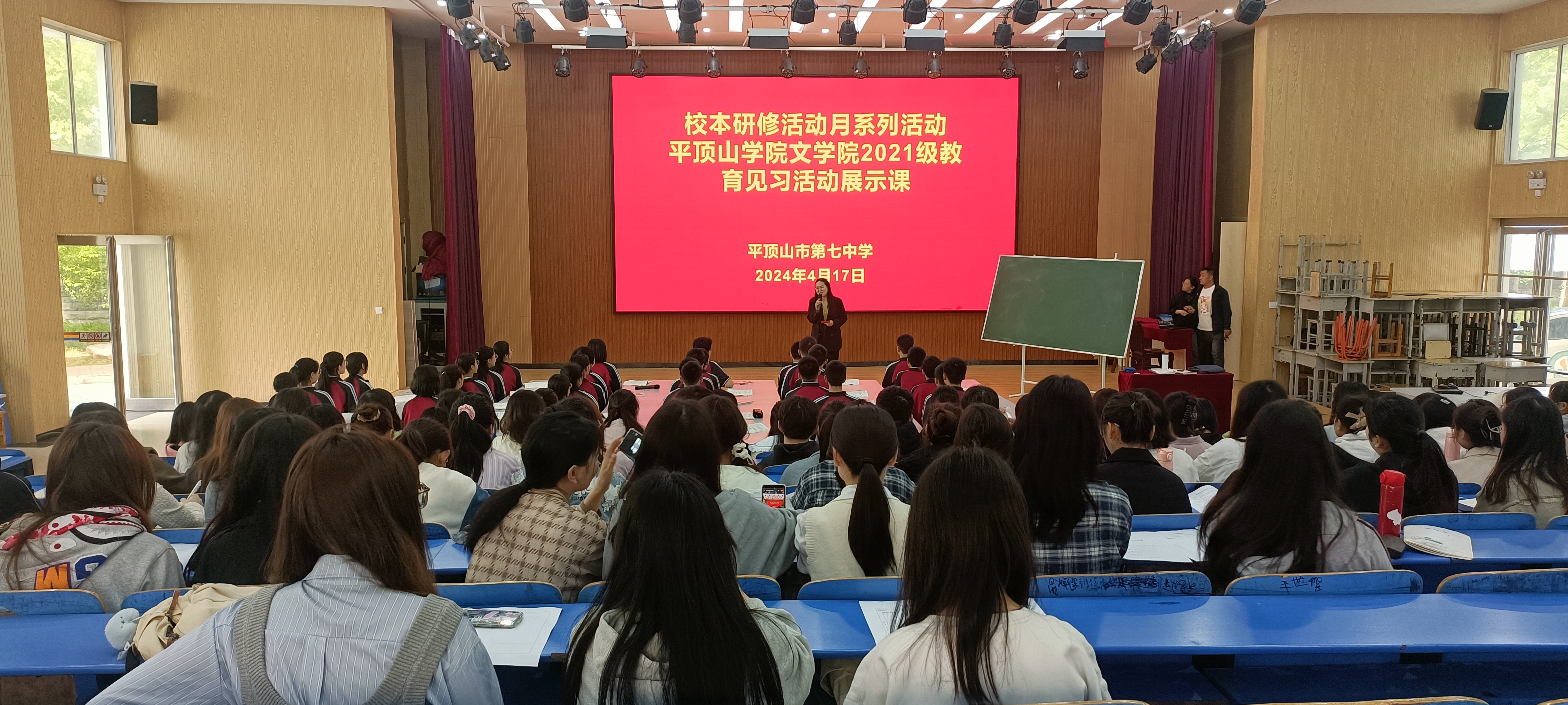 4月17日,文学院2024年师范专业集中教育见习活动第二组继续进行,文学院教师卢淑芳、秦玉莲、朱玉雯带领2021级汉语言文学2班、汉语国际教育1班共99人前往平顶山市第七中学(以下简称市七中)进行实地观摩学习。