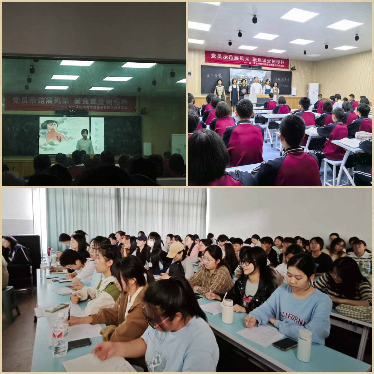 升旗仪式结束后,我院师生来到一高初中部演播厅,现场观摩了初中部语文教师孟园园的公开课《综合性学习——天下国家》。孟老师通过多媒体视频进行课堂导入,调动了初中部同学的积极性;教学过程分三个模块展开,引导学生从“爱国人物故事讲述”“爱国诗词朗诵”“爱国名言讲解”三个方面进行分享。同学们自信的身姿、抑扬顿挫的朗读声引得大家响起阵阵掌声。课程最后,同学们展示了自己根据课堂分享精心制作的手抄报,与课堂主题形成了首尾呼应的良好效果。