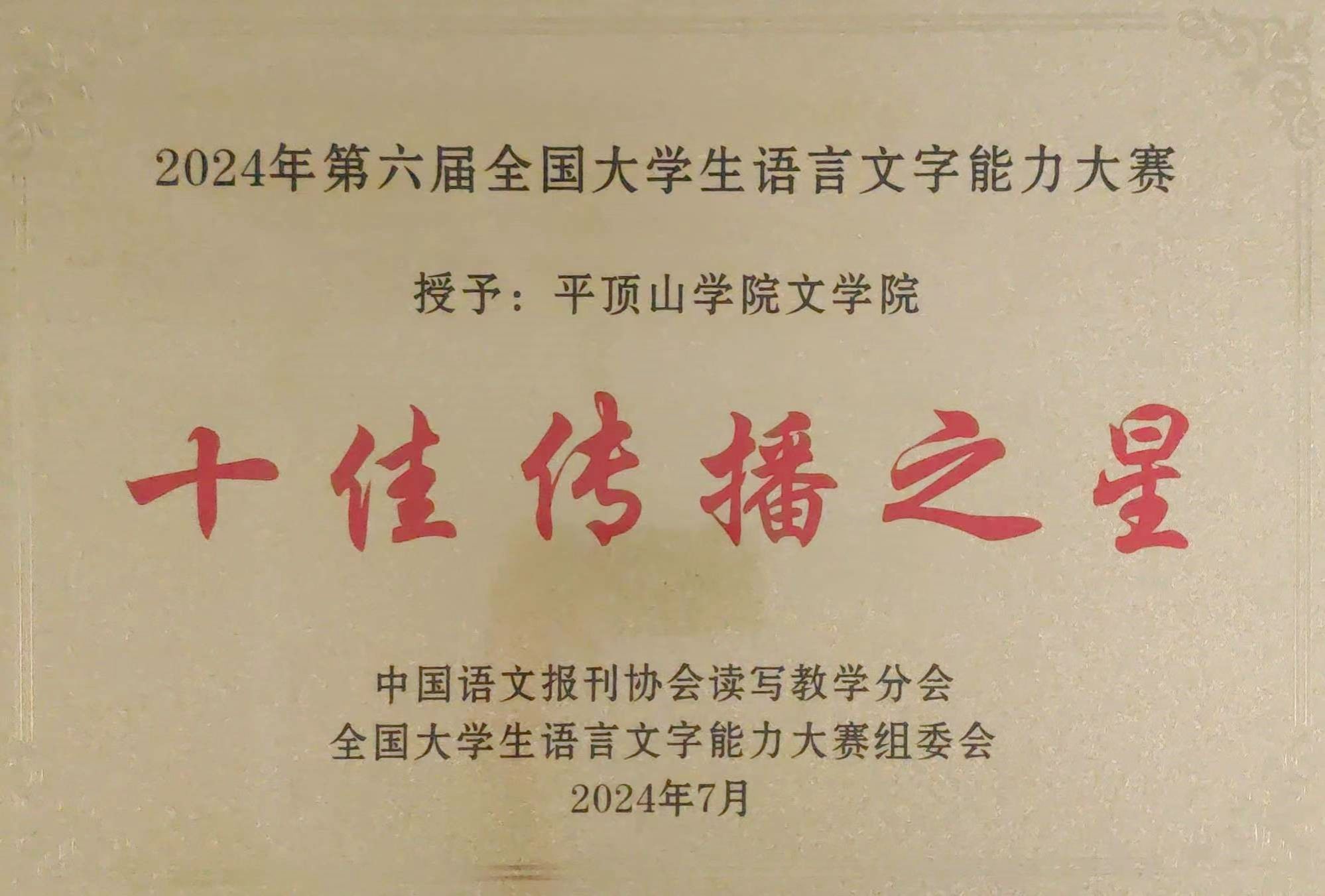 文学院——第六届全国大学生语言文字能力大赛十佳传播之星