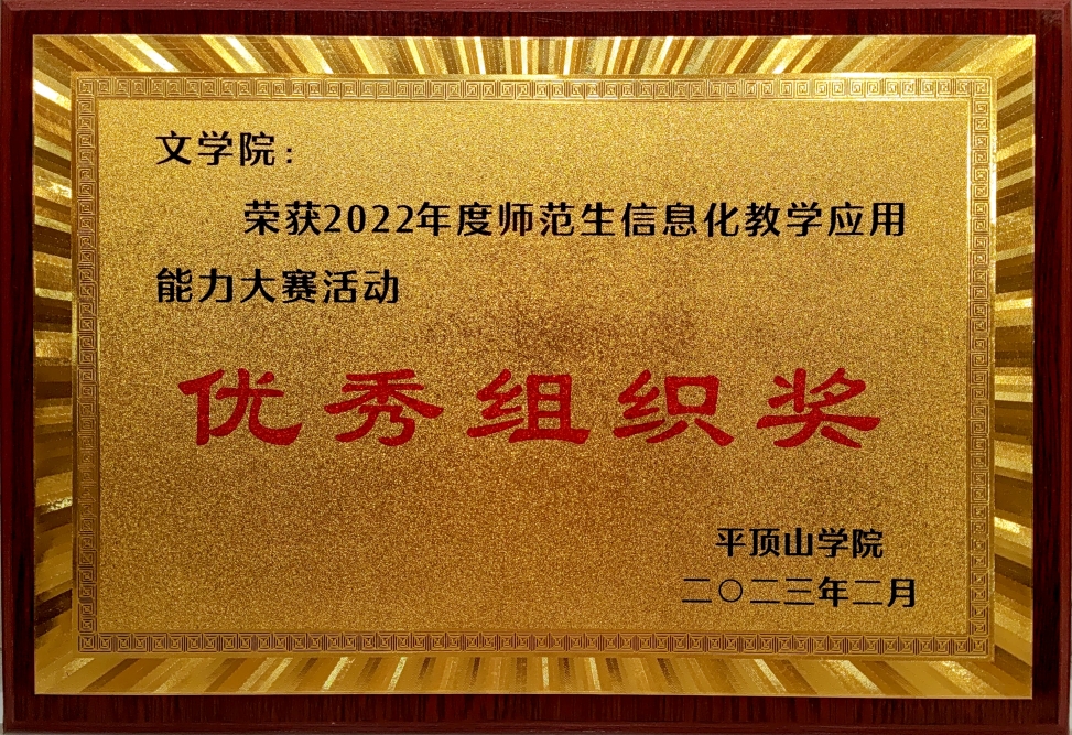文学院——平顶山学院2022年度师范生信息化教学应用能力大赛活动优秀组织奖