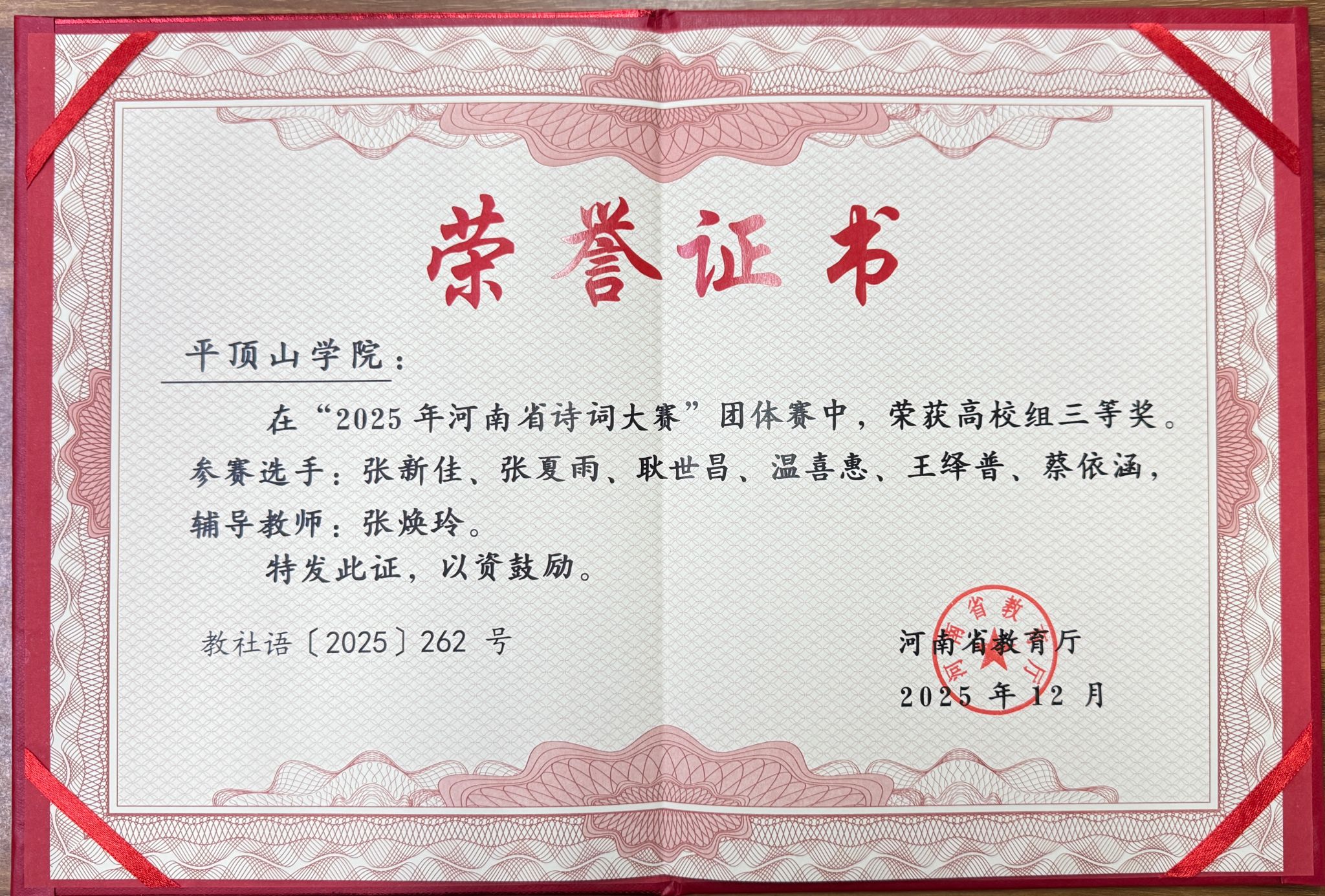 文学院——2025年河南省诗词大赛团体赛三等奖