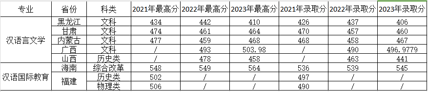 文学院分省分专业2021-2023年录取分数线
