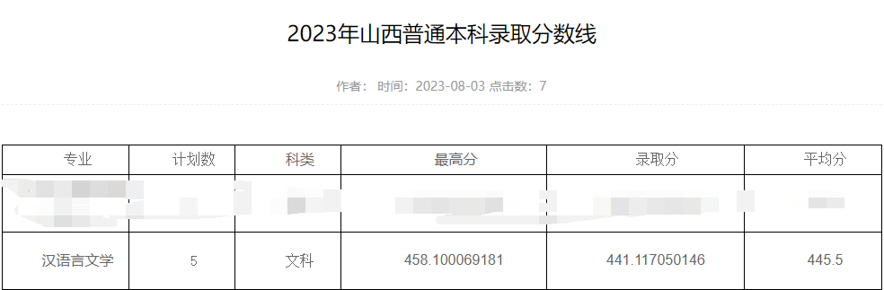 文学院2023年山西普通本科录取分数线