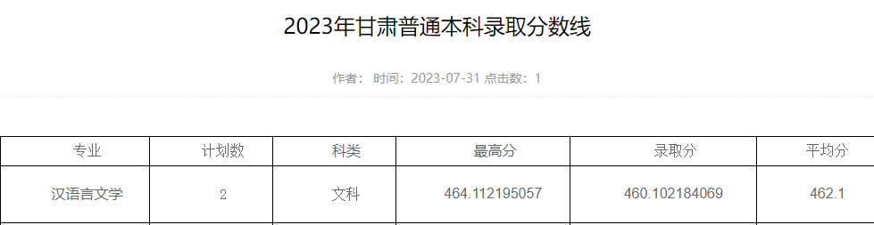 文学院2023年甘肃普通本科录取分数线