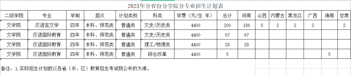 文学院2023年各专业招生计划