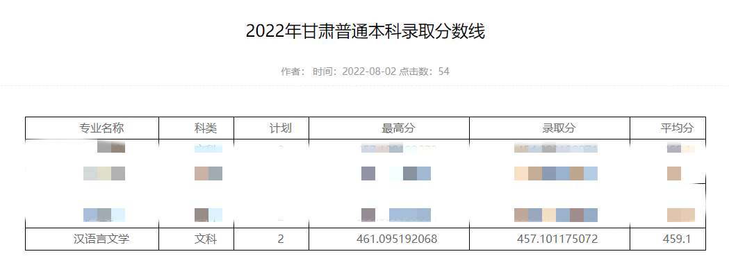 文学院2022年甘肃普通本科录取分数线