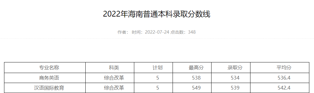 文学院2022年海南普通本科录取分数线(汉语国际教育)